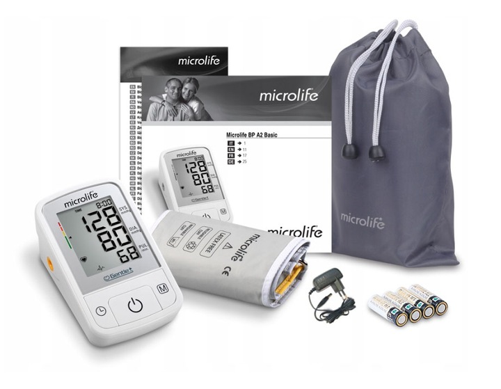 Завдяки своїй простоті ідеально підходить для вимірювання артеріального тиску вдома. Пристрій має датчик розряду батареї та пам'ять останніх 30 вимірювань із зазначенням дати та часу. Тонометр BP A2 від Microlife — це автоматичний тонометр для плеча. Завдяки простій експлуатації та точності він ідеально підходить для регулярного контролю артеріального тиску вдома. Тонометр може працювати від батарейок. Коли батареї розряджаються, на пристрої з’являється блимаючий символ для інформування користувача. Тонометр має пам'ять про останні 30 вимірюваннях разом із датою та часом. Пристрій дозволяє виявляти аритмії серця.