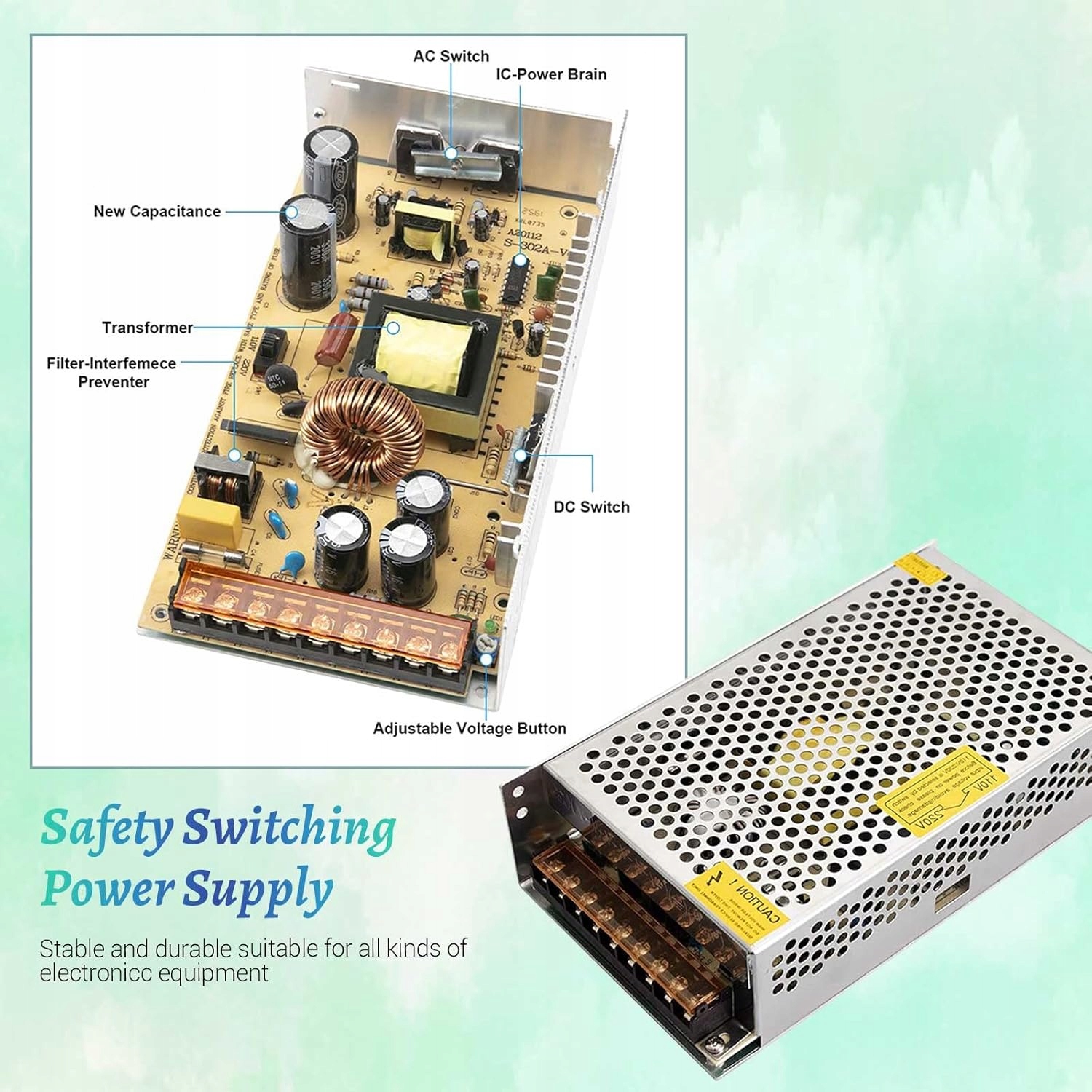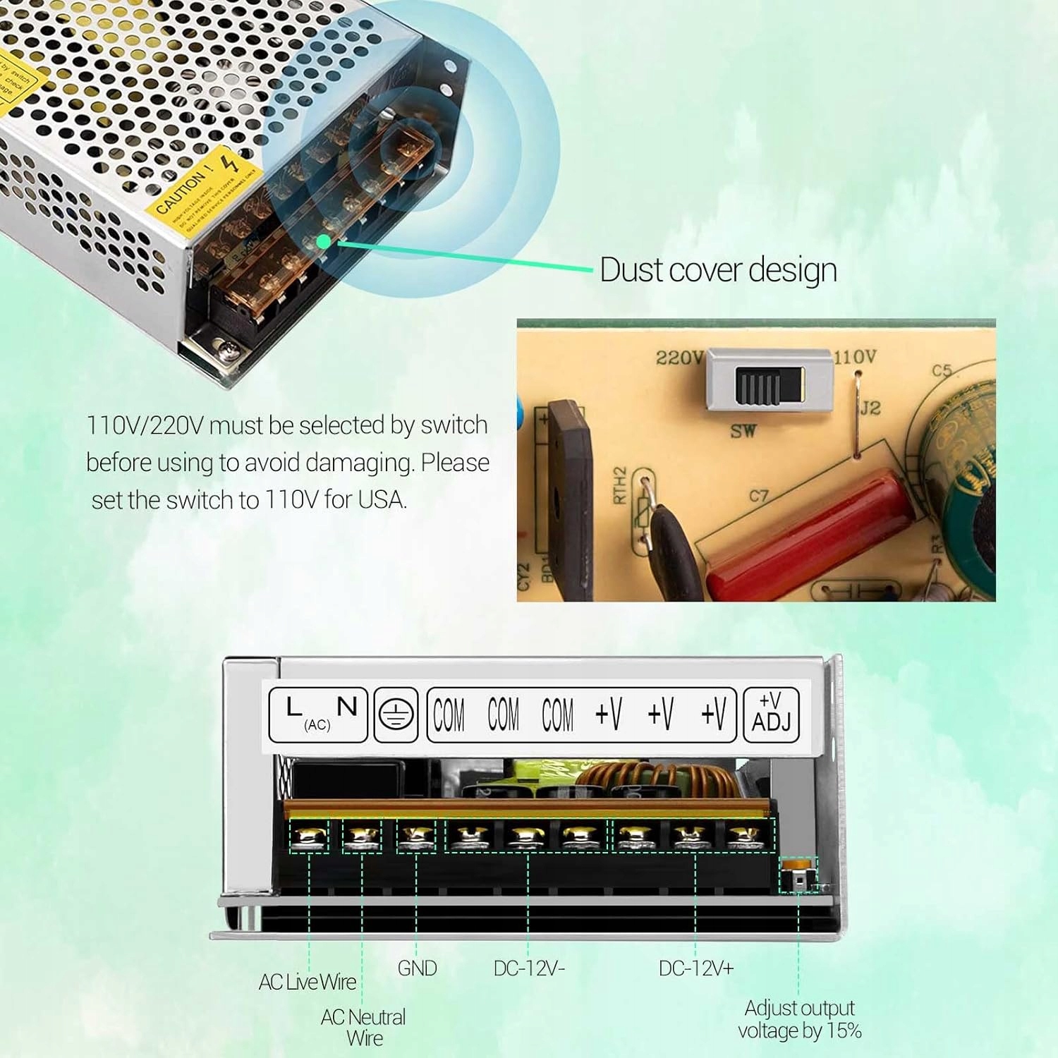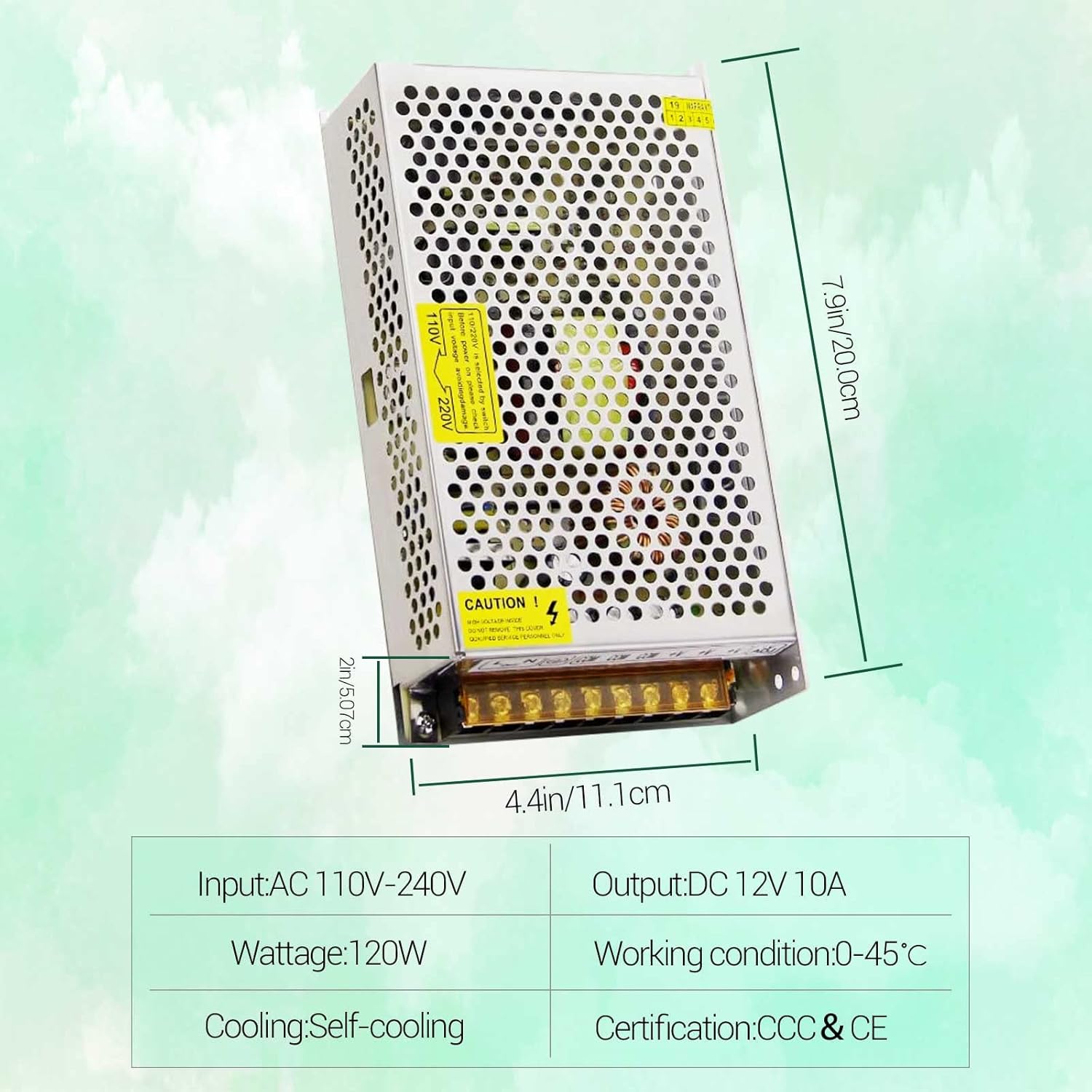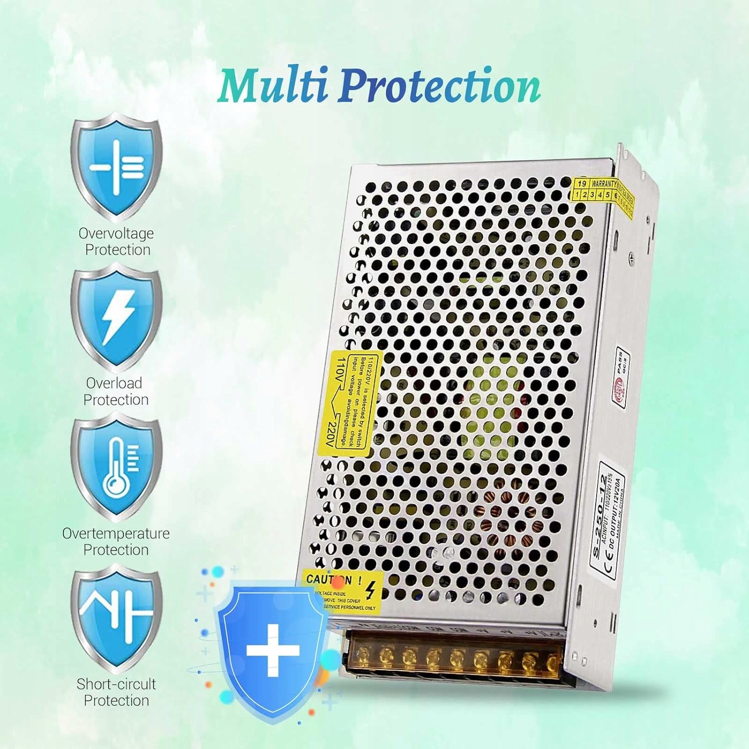 Корпус живлення 12В 20A виготовляється з міцного алюмінію з новими компонентами високої якості для тривалого життя.