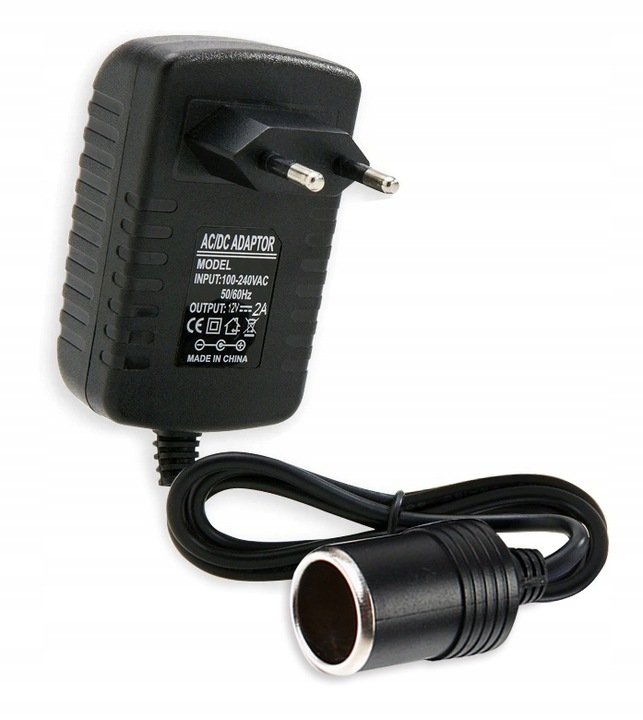 Перетворювач напруги з розетки 230 В на розетку прикурювача 12 В. Забезпечує вихідну напругу 12 В. Максимальний вихідний струм джерела живлення становить 2A. Оснащений штекером прикурювача. Ідеально підходить для пристроїв, що живляться від мережі 12 В і мають вхід "прикурювача". розетка .