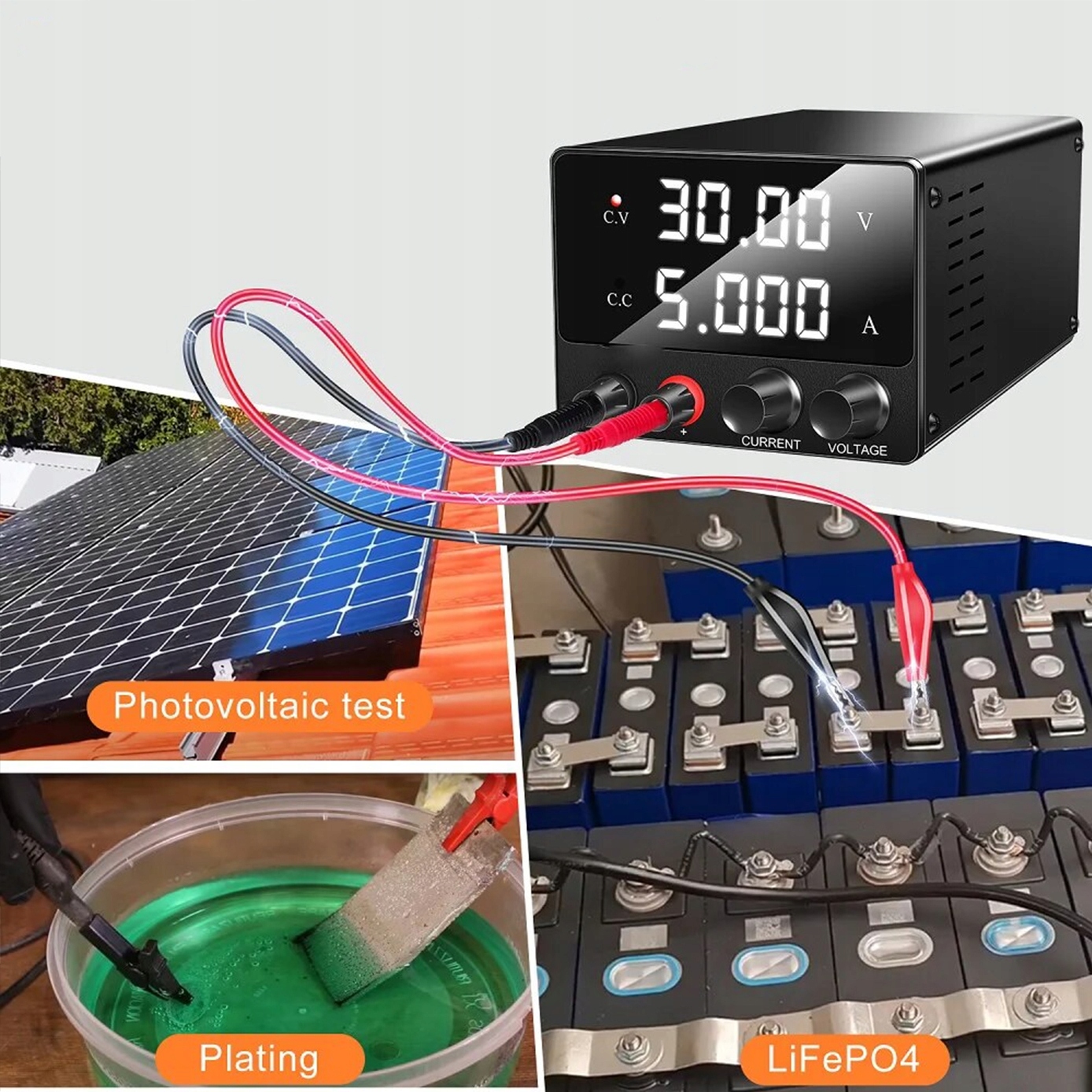 Блок живлення має стандартні вихідні затискачі напруги: це 4 -мм бананова пробка. Бананова вилка може бути підключена до вихідних розетків. Червоний-це вихід (+) і чорна (-) маса. Лабораторне електропостачання дуже просте у використанні. Це незамінне джерело для подачі пристроїв з постійною напругою постійного струму. Це сприяє процесу освіти, тестів та всіх семінарських служб.