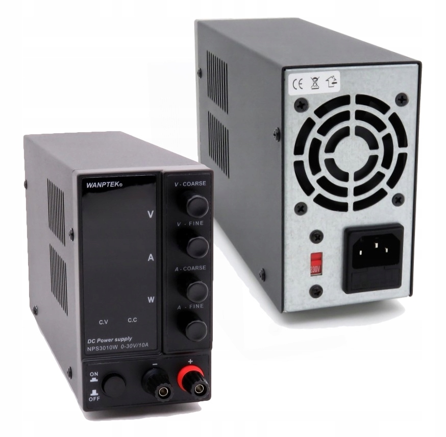Стабілізований лабораторний блок живлення Wapttek з плавним регулюванням напруги в діапазоні від 0 до 30 В і струму в діапазоні від 0 до 10 А. Він має вбудований дисплей і вентилятор, який забезпечує належне охолодження. Блок живлення може працювати в двох режимах: C.V. (постійна вихідна напруга) і C.C. (постійний струм навантаження). Він оснащений захистом від короткого замикання, перегріву та перевантаження. Завдяки невеликим розмірам він ідеально підходить для будь-якої майстерні електроніки.