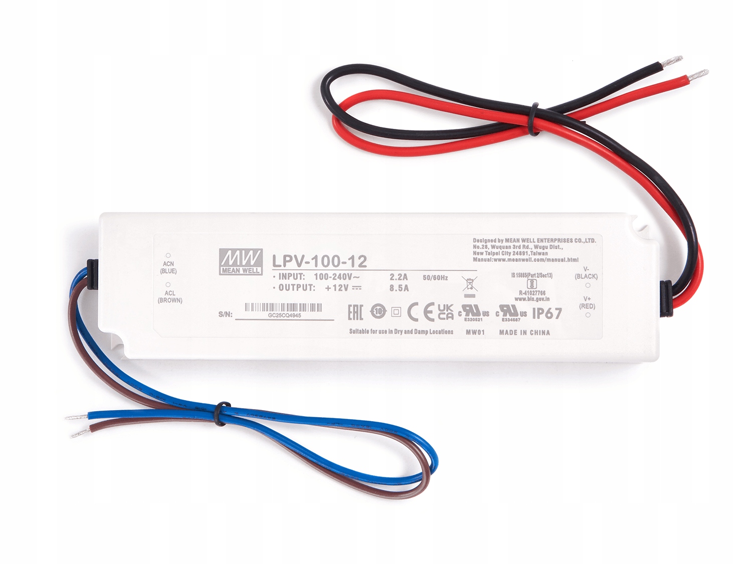 БЛОК ЖИВЛЕННЯ LED 12V 100W 8.5A IP67 LPV MEAN WELL