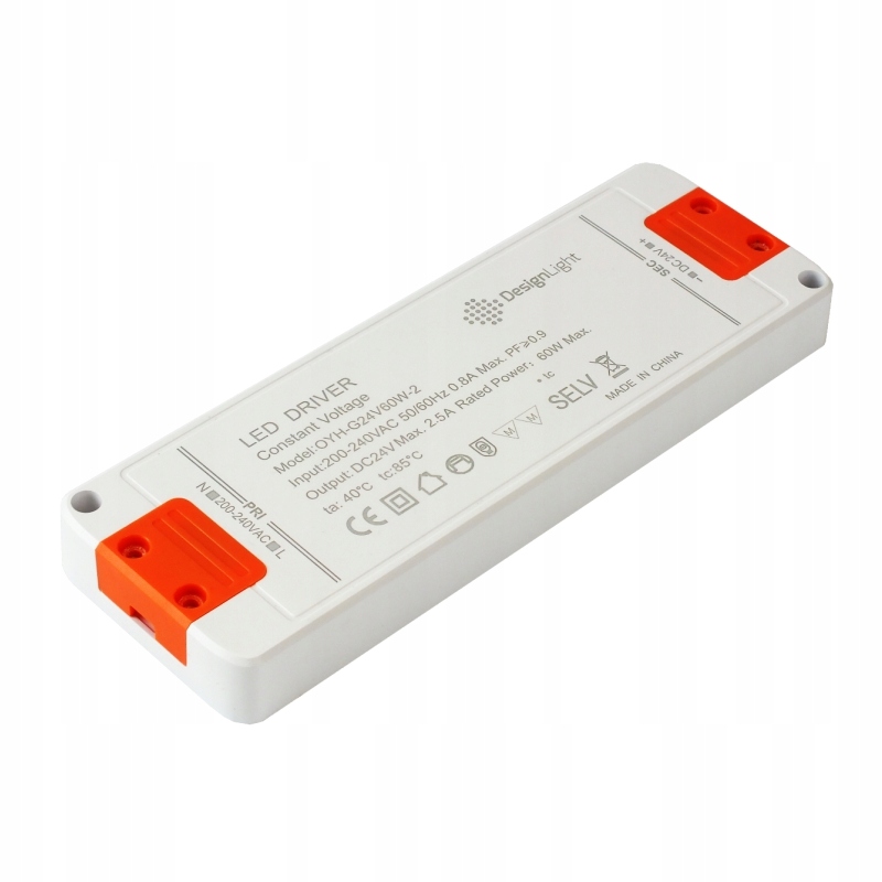 Його призначення — живити світлодіодне освітлення з напругою 24 В постійного струму та загальною потужністю, що не перевищує 60 Вт. Максимальна робоча температура становить 80 градусів C. Він має вхідні та вихідні з’єднувальні клеми.