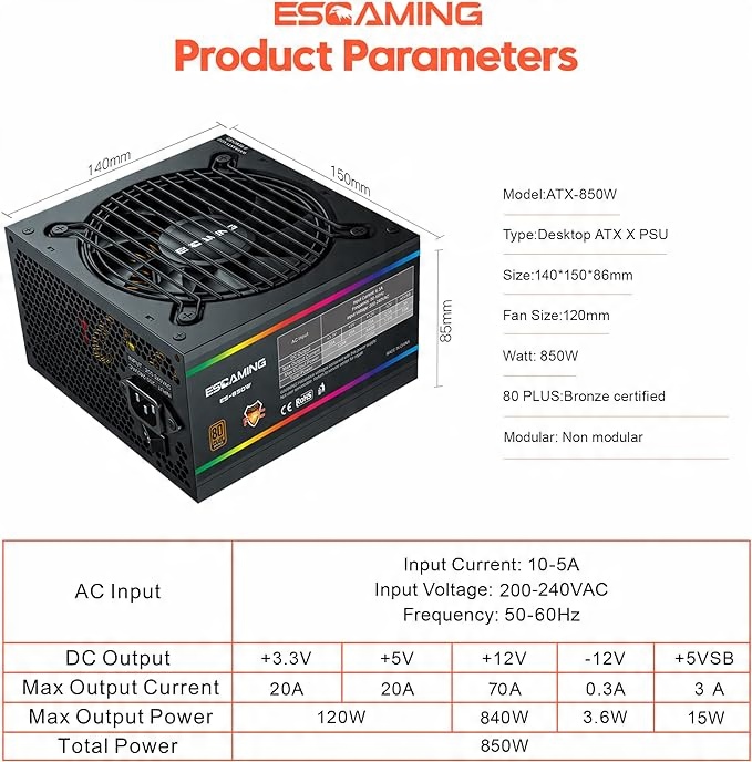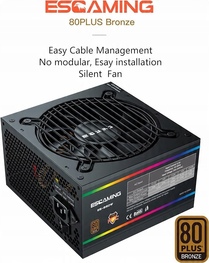 - - Ігровий блок живлення змінного струму APFC 850 Вт ATX.