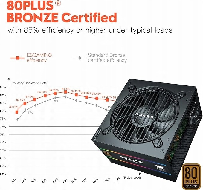 - - Сертифікат 80 plus bronze, ефективність 85% або вище та дуже стабільна напруга