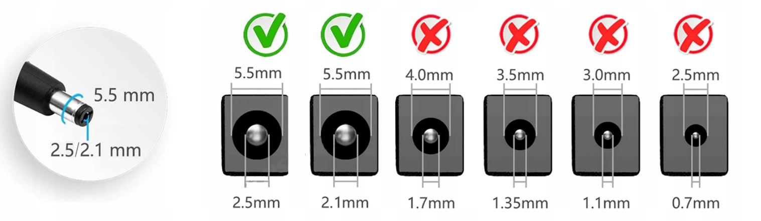 ✴️ Вилка: 2,5/5,5 мм (працює з 2 розетками, 1/5,5 мм b>)