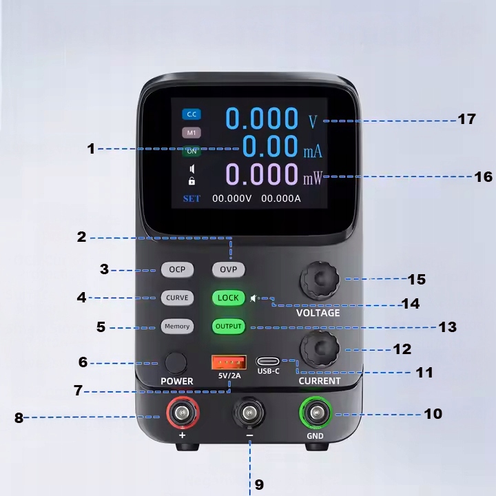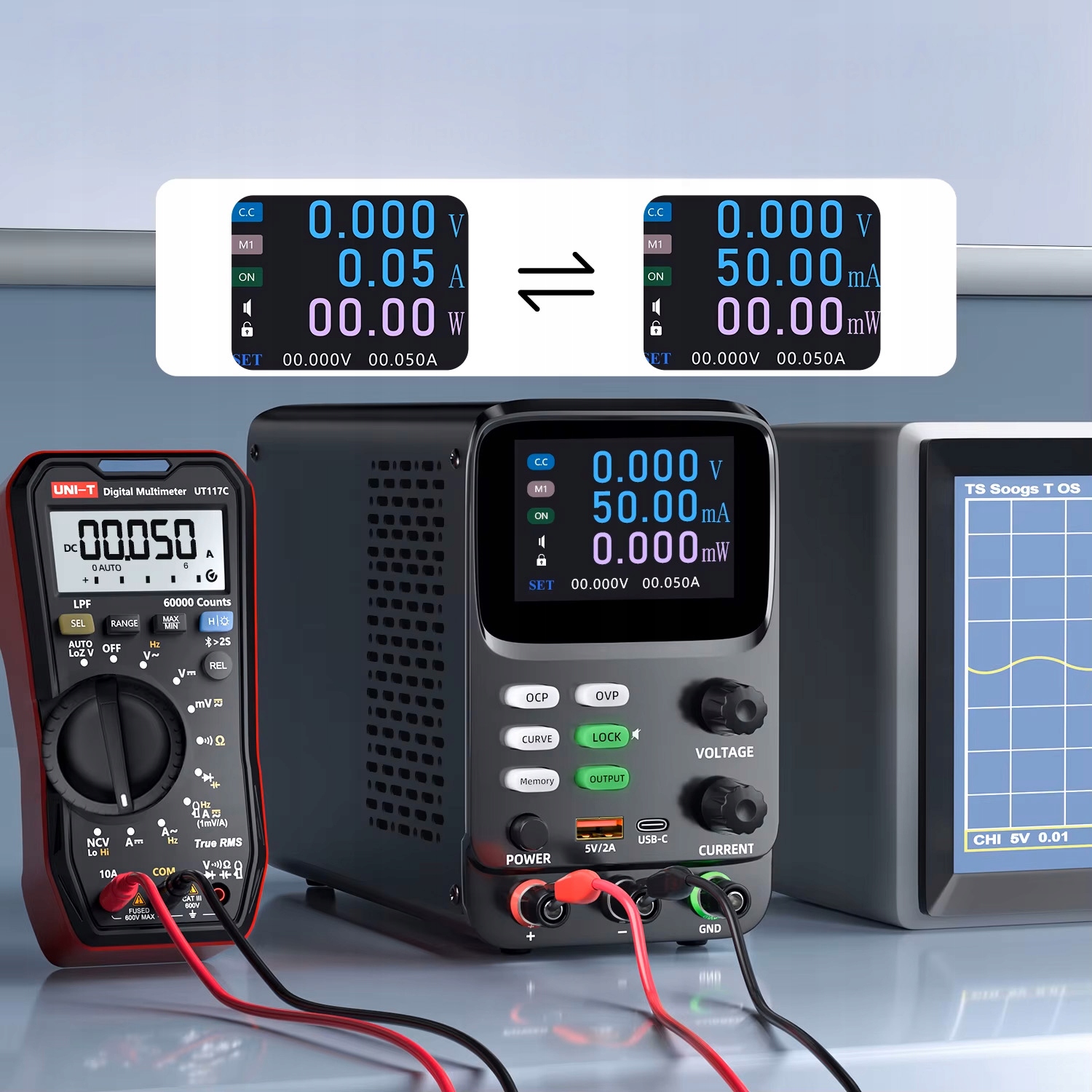 ✅ Регулювання напруги в діапазоні 0-30 В дозволяє точно налаштовувати параметри під конкретні потреби приладу, що забезпечує більшу точність тестів і безпечні умови роботи.