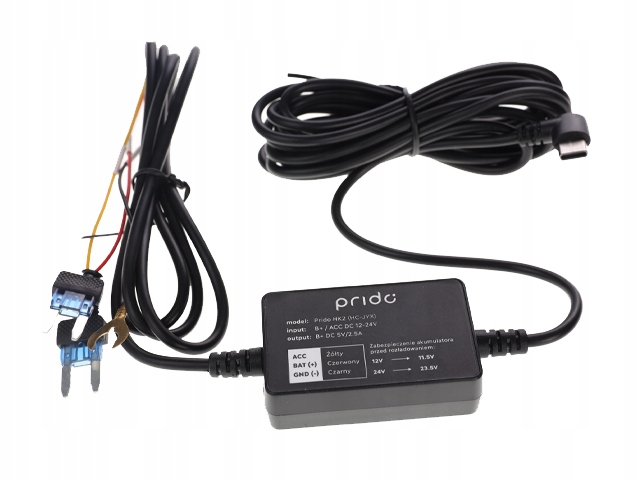 Завдяки перетворювачу живлення, що входить у комплект, Prido HK2 не тільки живить камеру, але й захищає автомобільний акумулятор перед розрядом. Тому правильно встановлений пристрій є абсолютно безпечним для електричної системи автомобіля.