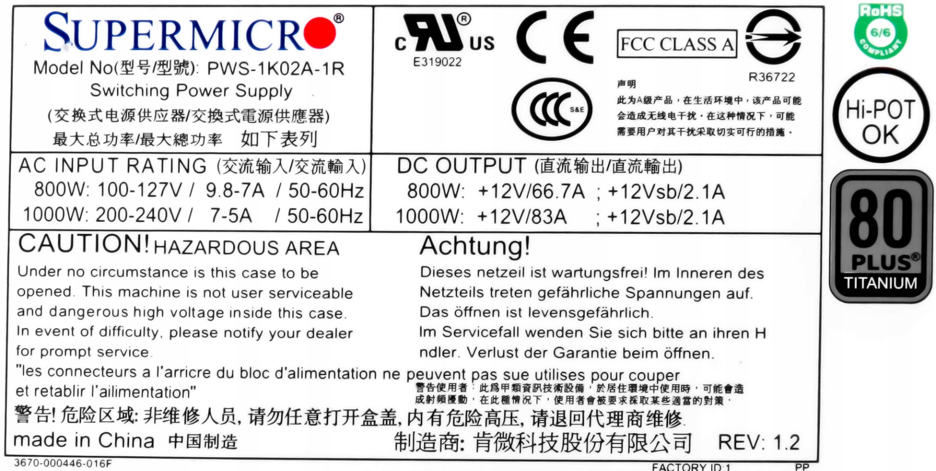SUPERMICRO PWS-1K02A-1R 800W / 1000W 1U