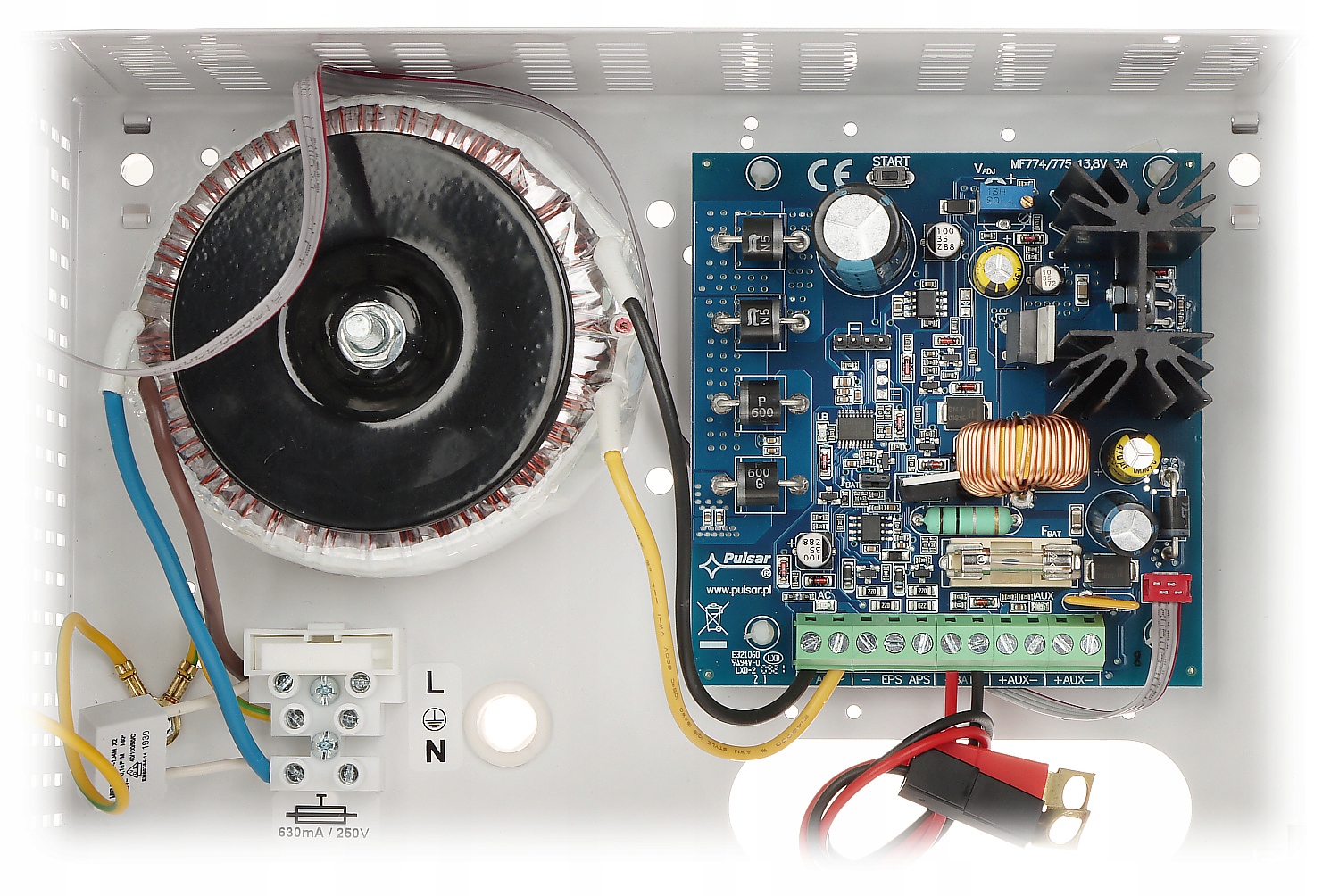 Вихідна напруга - стабілізована Мікропроцесорна система автоматизації Перевірка зарядки акумулятора та обслуговування. Тамперна сигналізація - NC світлодіодна сигналізація 2 x вихід OC Відповідає стандарту EN 50131-6:2017 @ клас 2 Відповідає стандарту EN 60839-11:2013 @ клас 2