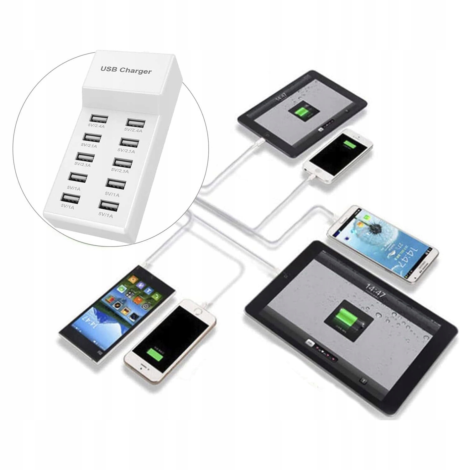 БЛОК ЖИВЛЕННЯ ЗАРЯДНА СТАНЦІЯ 10 x USB ШВИДКИЙ МЕРЕЖЕВИЙ ЗАРЯДНИЙ ПРИСТРІЙ ХАБ 50 Вт
