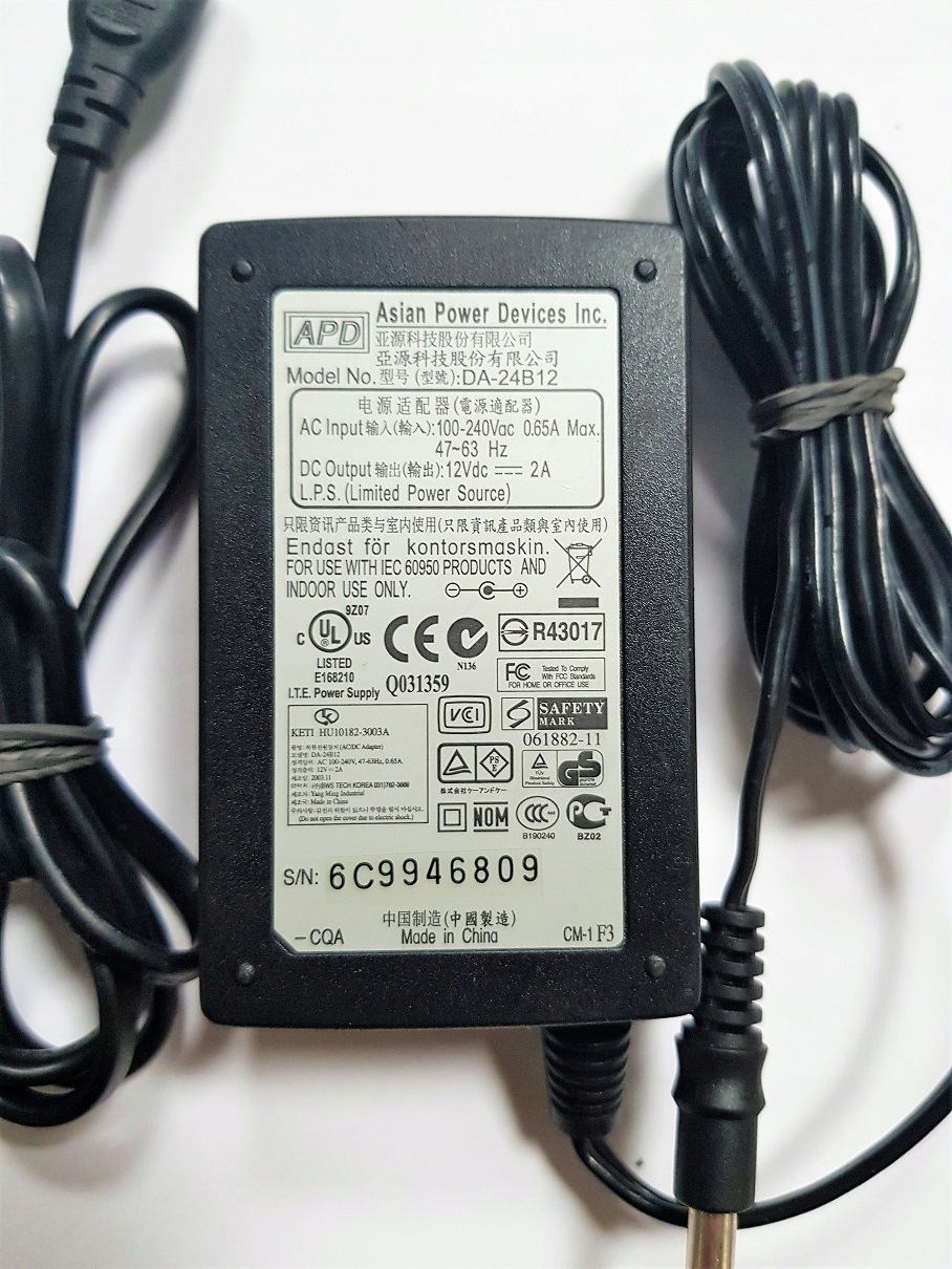 БЛОК ЖИВЛЕННЯ ЗАРЯДНИЙ ПРИСТРІЙ APD 12V 2A DA-24B12 МОНІТОР