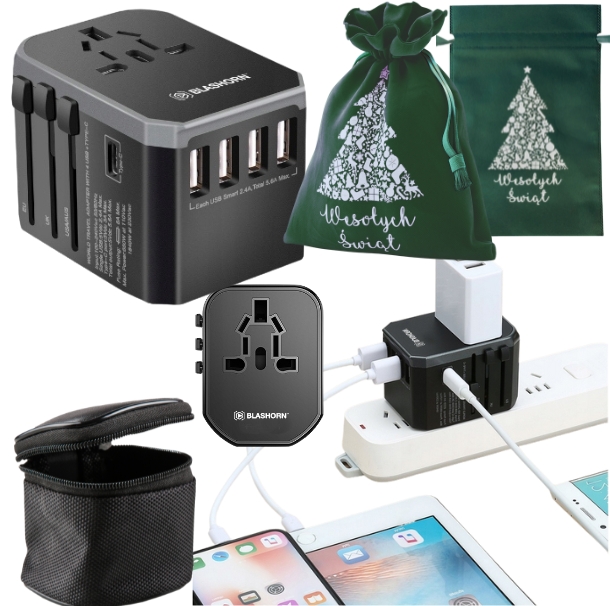 ➡️ Міжнародний зарядний пристрій для подорожей, який підходить для понад 150 країн з AUS / ЄС / штекери США / Великобританія 4 порти USB + USB-C