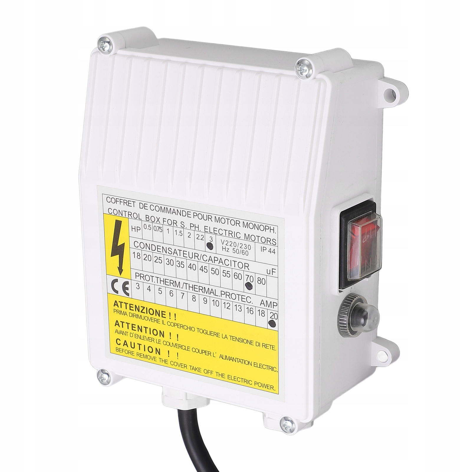 1, ПРОСТИЙ ТА ЛЕГКИЙ У ВИКОРИСТОВУВАННІ: блок керування використовується для підключення занурювального насоса з глибокої свердловини, яким легко керувати 2, КОРПУС ABS: виготовлений із чудового матеріалу ABS , ударостійкий , подряпин, екологічно чистий 3, МІЦНИЙ ТА ГЛАДКИЙ: використання якісного матеріалу, міцного та товстого, відмінної якості, забезпечує гладку поверхню, тривалий термін служби 4, ТЕХНІЧНІ ХАРАКТЕРИСТИКИ: вбудований перемикач захисту від перегріву, ви можете використовувати його з впевненість. Параметри: 2,2 кВт 3,0 HP 70 мкФ 20 A 5, КОРОЗІЙНОСТІЙКА НЕРЖАВІЮЧА СТАЛЬ: матеріал з нержавіючої сталі має корозійну стійкість, хороші механічні властивості та високу міцність
