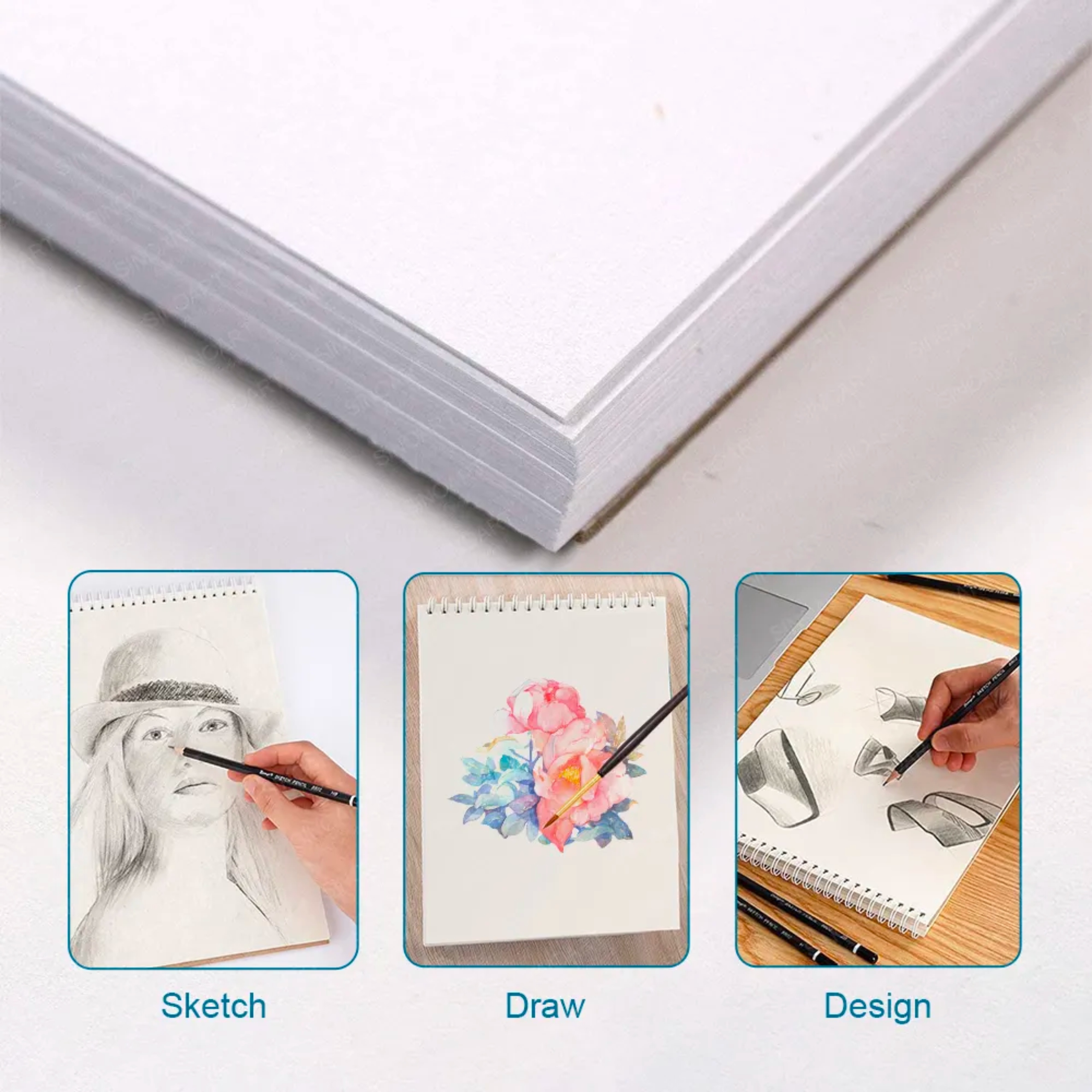 ⏺ Цей скетчбук оснащено спіральною палітуркою, яка дозволяє легко гортати сторінки. Він дозволяє легко регулювати будь-який бік і забезпечує рівну поверхню під час малювання, що особливо корисно під час роботи на плоскому столі.