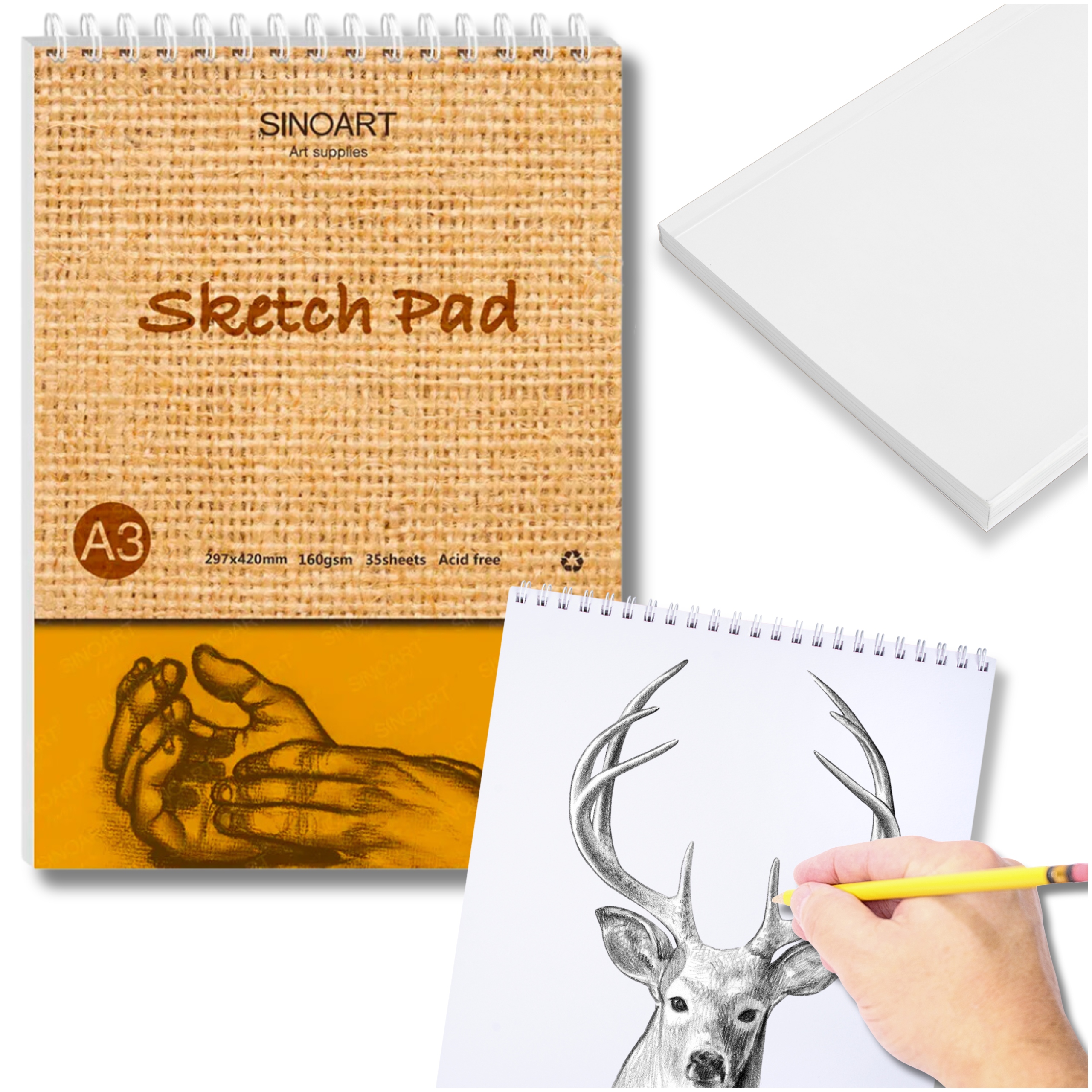 СЕТЧОК ДЛЯ ХУДОЖНИКІВ НА СПИРАЛІ 35 АРКУШІВ. SINOART A3 160G