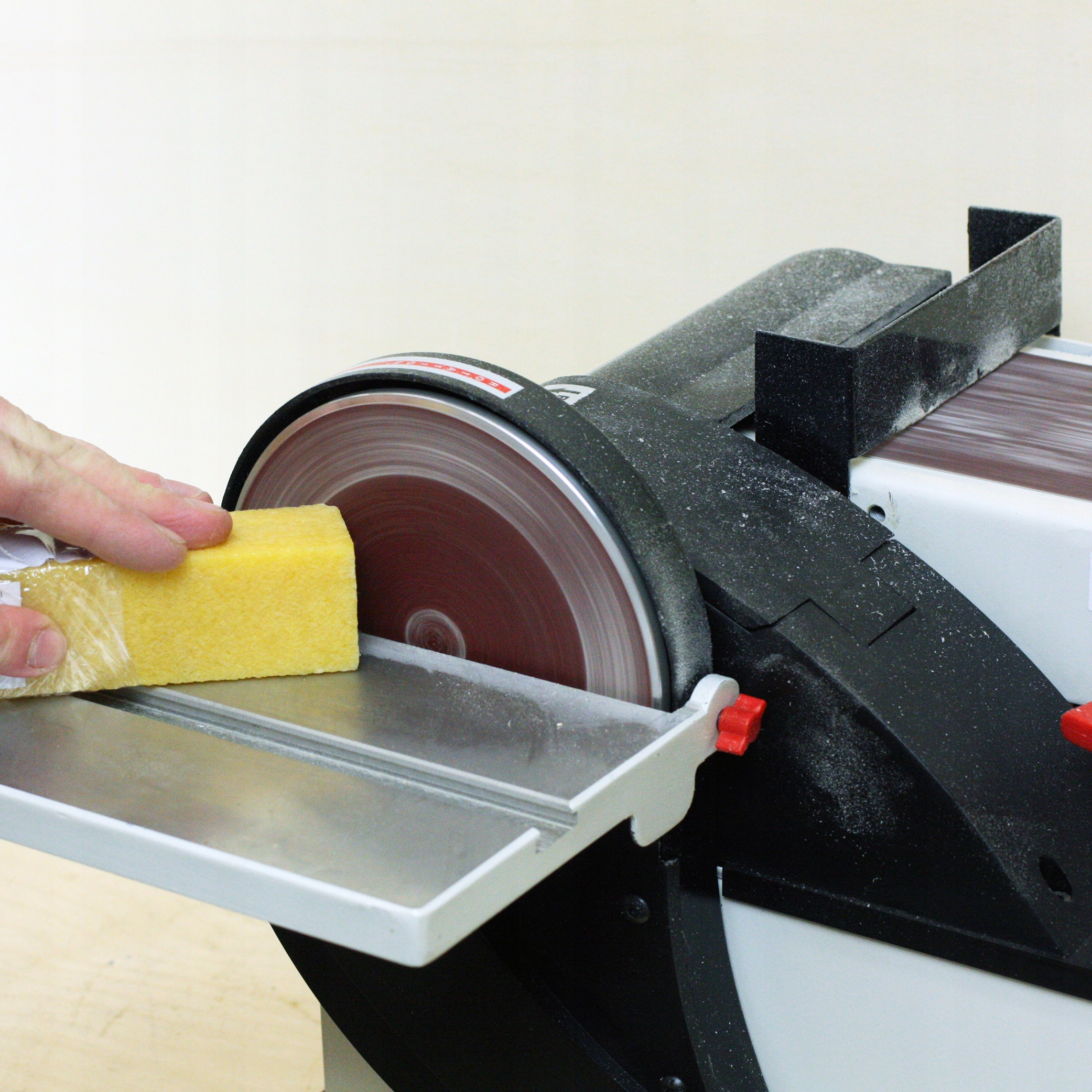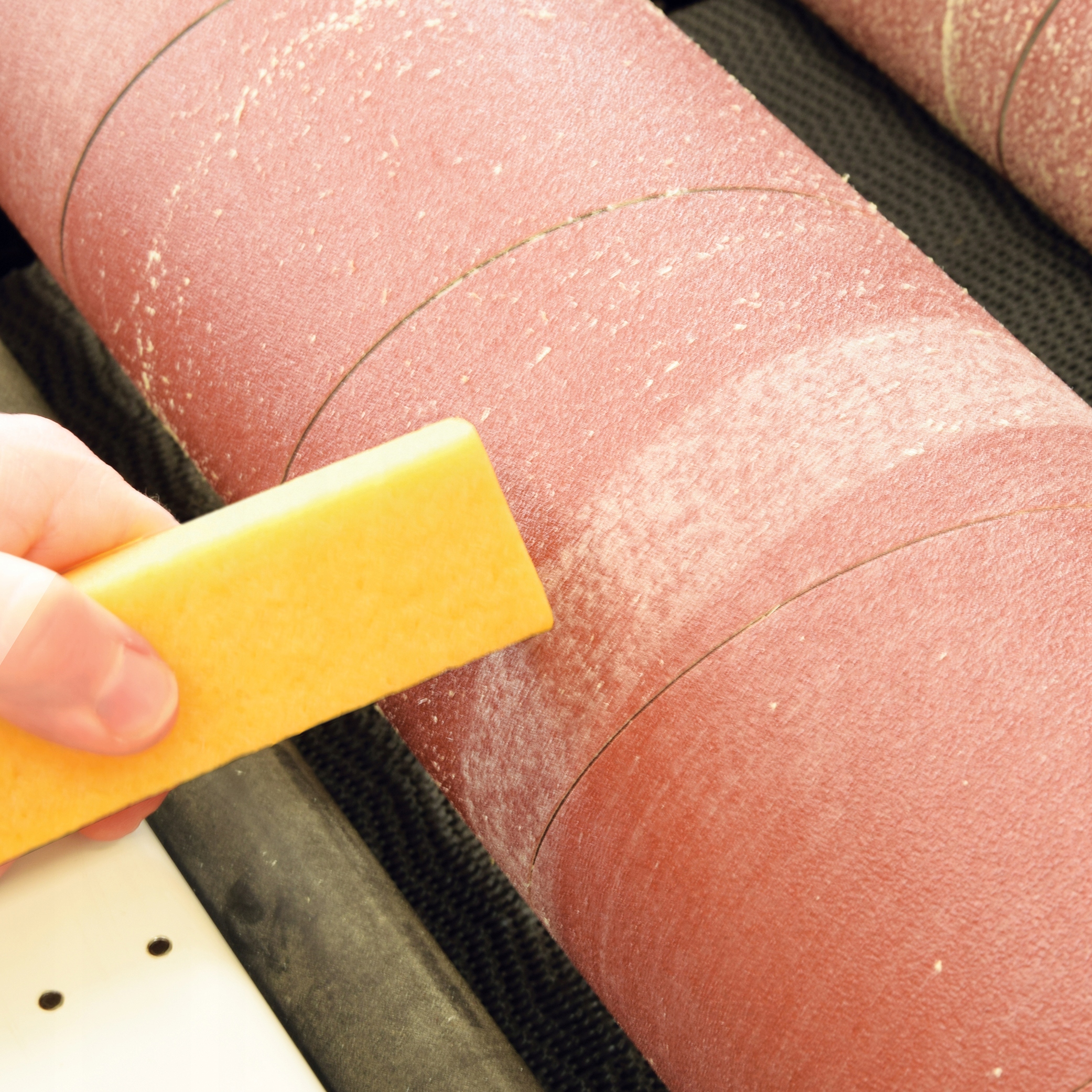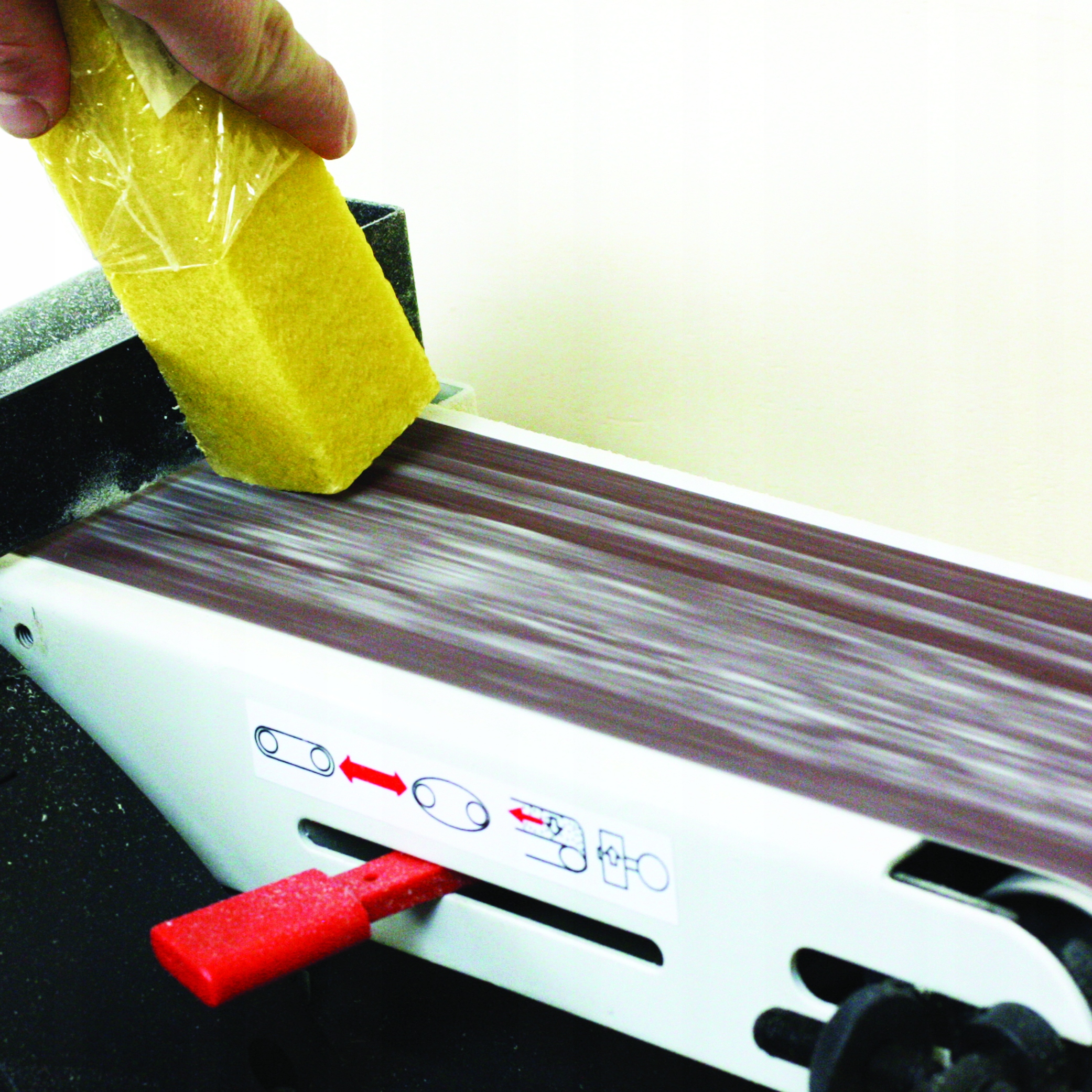 ✅ Поради : притисніть очищувач до стрічки або сильно шліфують щит. Очищувач передбачає пилові частинки, виготовлені з абразивного. Тримайте руки подалі від шліфувальної пластини - небезпека опіків. Використовуйте захист очей та респіратор.