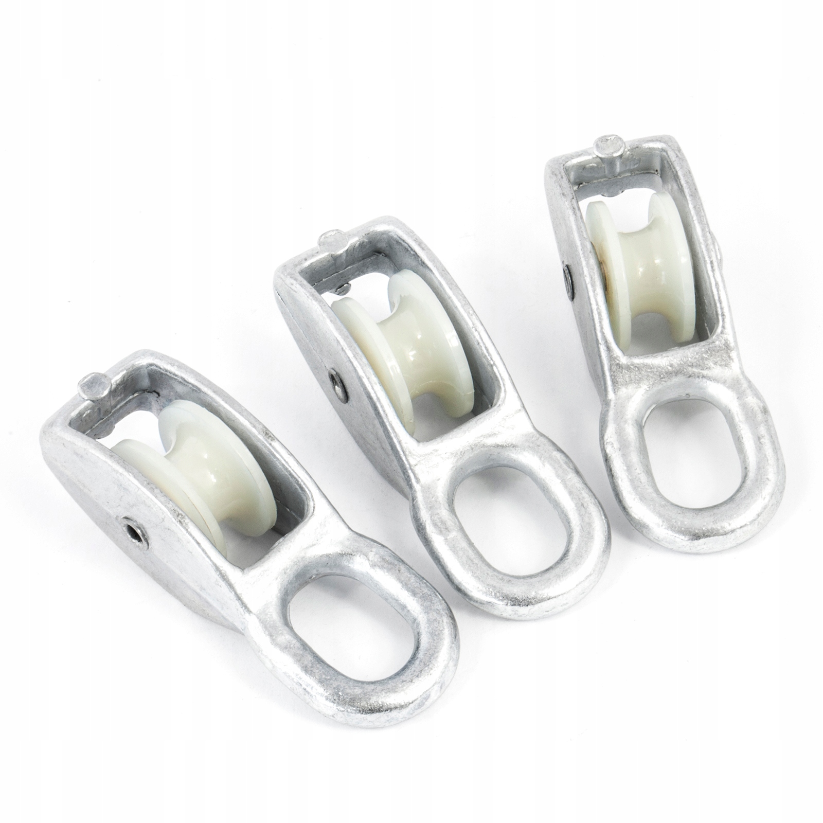 Шківи з одним нейлоновим кільцем призначені для ручного підйому, підтримки, зміни напрямку або вирівнювання навантаження та довжини мотузки. Вони також часто використовуються для простого підвішування вантажів за допомогою мотузок.