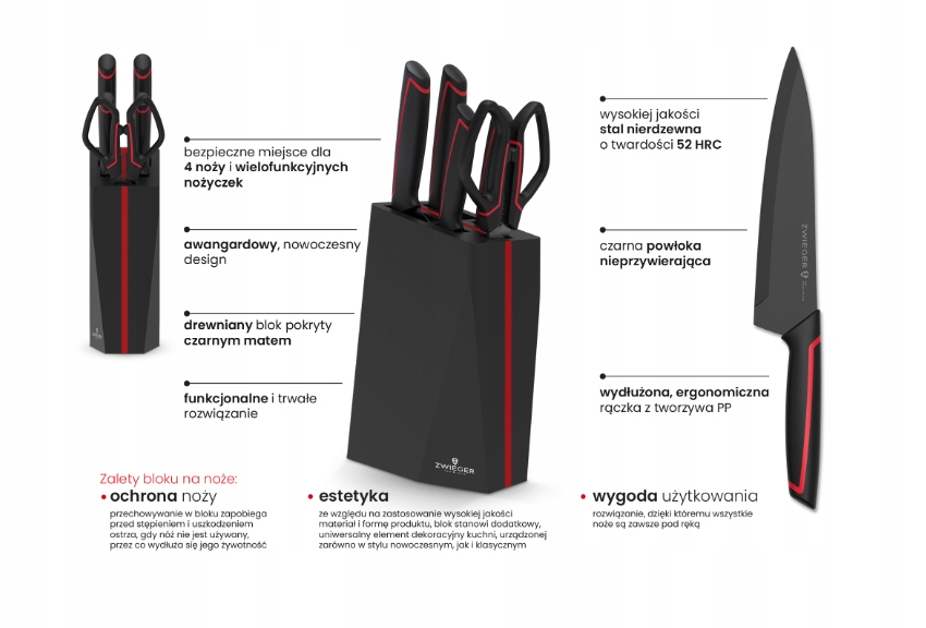 БЛОК З НАБОРОМ 4 НОЖІВ ZWIEGER RED LINE І НОЖИЦІ НАБІР НОЖІВ У БЛОКУ