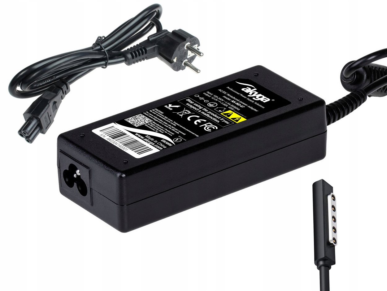 Akyga, серед широкого асортименту продуктів, пропонує серію найякісніших блоків живлення для ноутбуків. AK-ND-67 – це джерело живлення потужністю 45 Вт, сумісне з моделями ноутбуків Microsoft Surface і Surface PRO 2, які живляться від 12 В і максимум 3,60 A і з вилкою Surface Charging Plug.