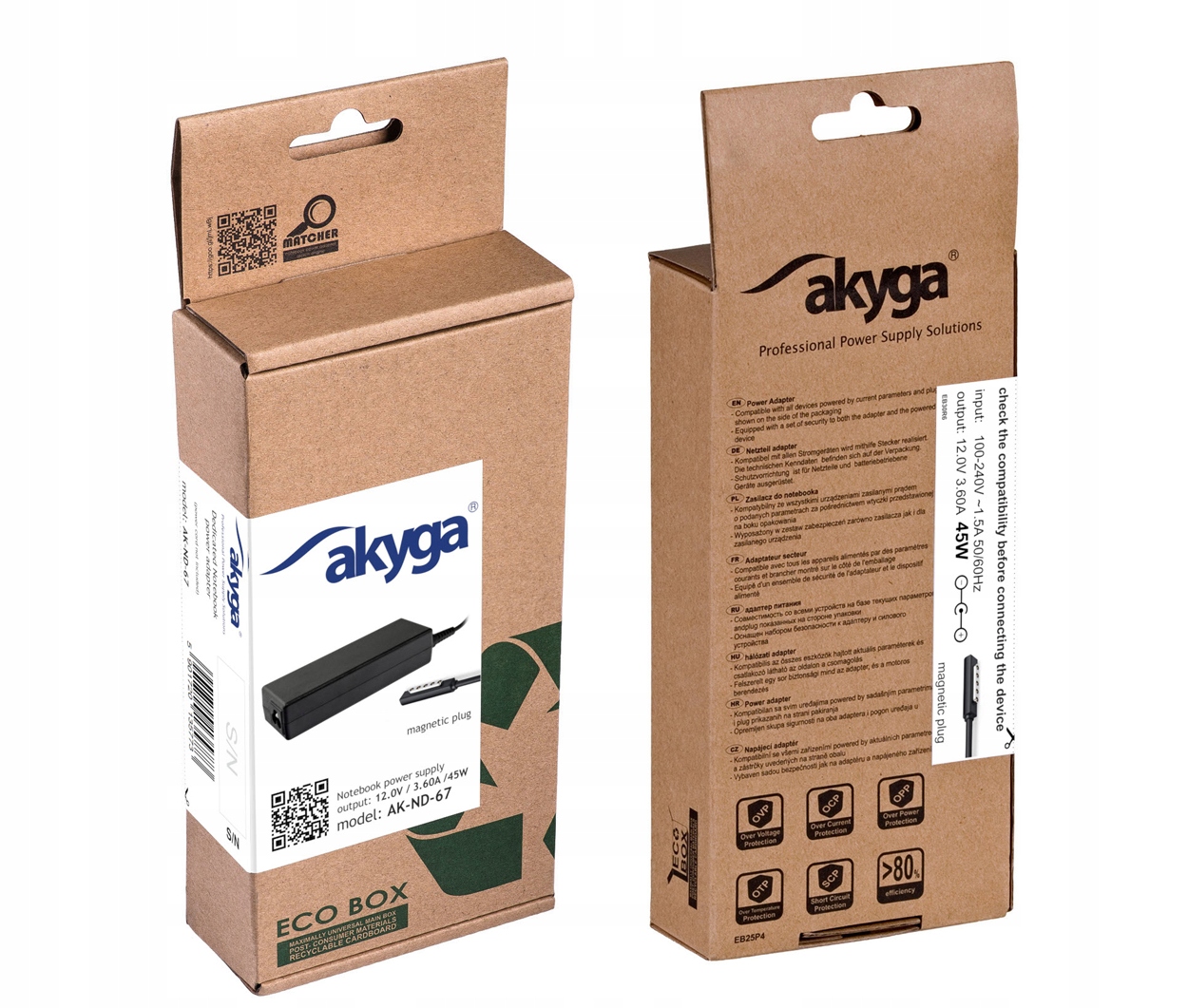 Усі блоки живлення Akyga упаковані в екологічно чисту упаковку EcoBox.