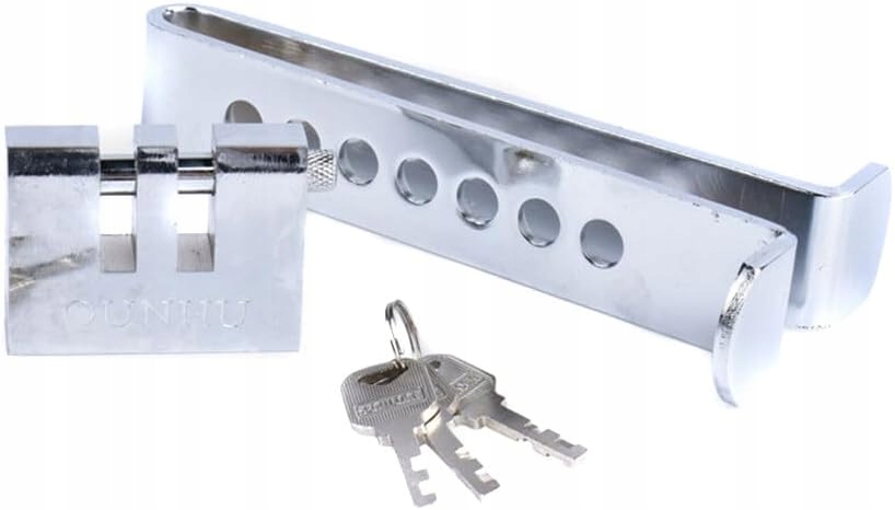 Захист від крадіжки. Цей автомобільний замок зчеплення може запобігти крадіжці шляхом свердління та зламу та забезпечує ефективний захист автомобілів і майна. Ви можете бути впевнені, що можете припаркувати свій автомобіль. Розмір цього гальмівного замка автомобіля становить 8 отворів і 9 отворів на ваш вибір із розмірами 195 см х 85 см 8 отворів або 215 см х 85 см 85 дюймів х 33 дюйми 9 отворів. Матеріал Автомобільний гальмівний газовий замок виготовлений з масивної нержавіючої сталі, виготовлений з потовщеного матеріалу, зносостійкий, міцний, довговічний, не деформується і має тривалий термін служби. Застосування Цей протиугінний замок зчеплення для автомобілів підходить для зчеплення та газового гальмування з товщиною передньої частини менше 13 см. У набір входить 1 запірна планка, 1 навісний замок і 3 ключа. Замок важить близько 04 кг і надійно замикається. Його неможливо знищити силою.