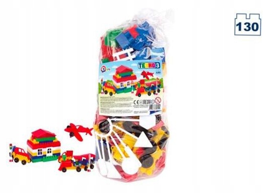 блоки (130 елементів) для побудови різних об'єктів. Набір складається з різних типів та блоків розмірів. Окрім класичних структурних елементів, набір також включає такі незвичайні форми. Це, наприклад, колеса, двері, елементи людей, транспортних засобів та знаків. Набір збагачений наклейками, завдяки якому створені предмети отримають реальність. Через те, що набір складається з 130 елементів, ми можемо створити великі будівлі та міські пейзажі. Розміри упаковки: 16х12x41 см: 3+