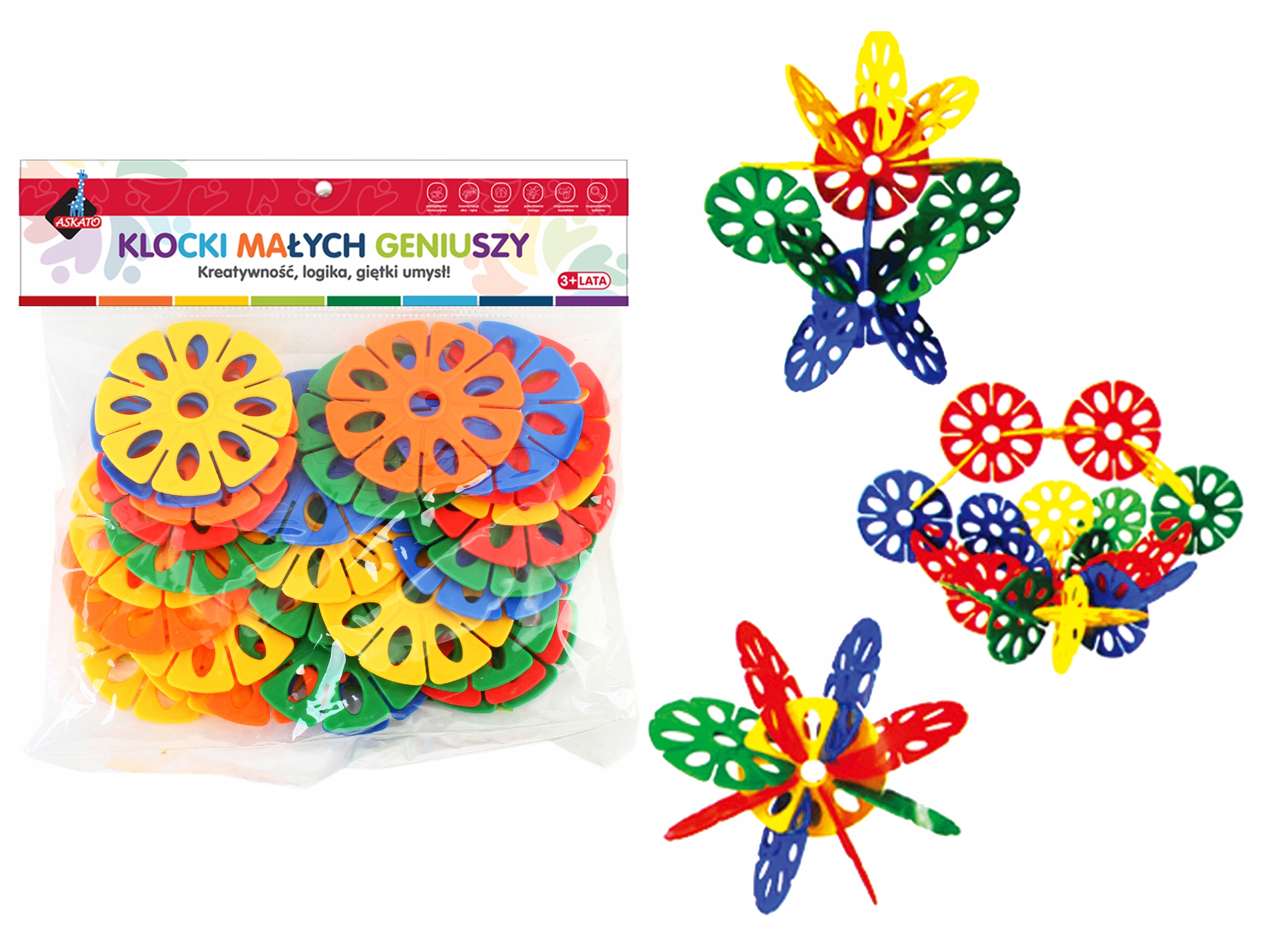 Фантастичні та оригінальні кубики розвивають ручні навички та стимулюють творчі здібності дитини. Пластикові блоки різних форм, кольорів зеленого, червоного, синього та жовтого. У наборі 28 деталей.