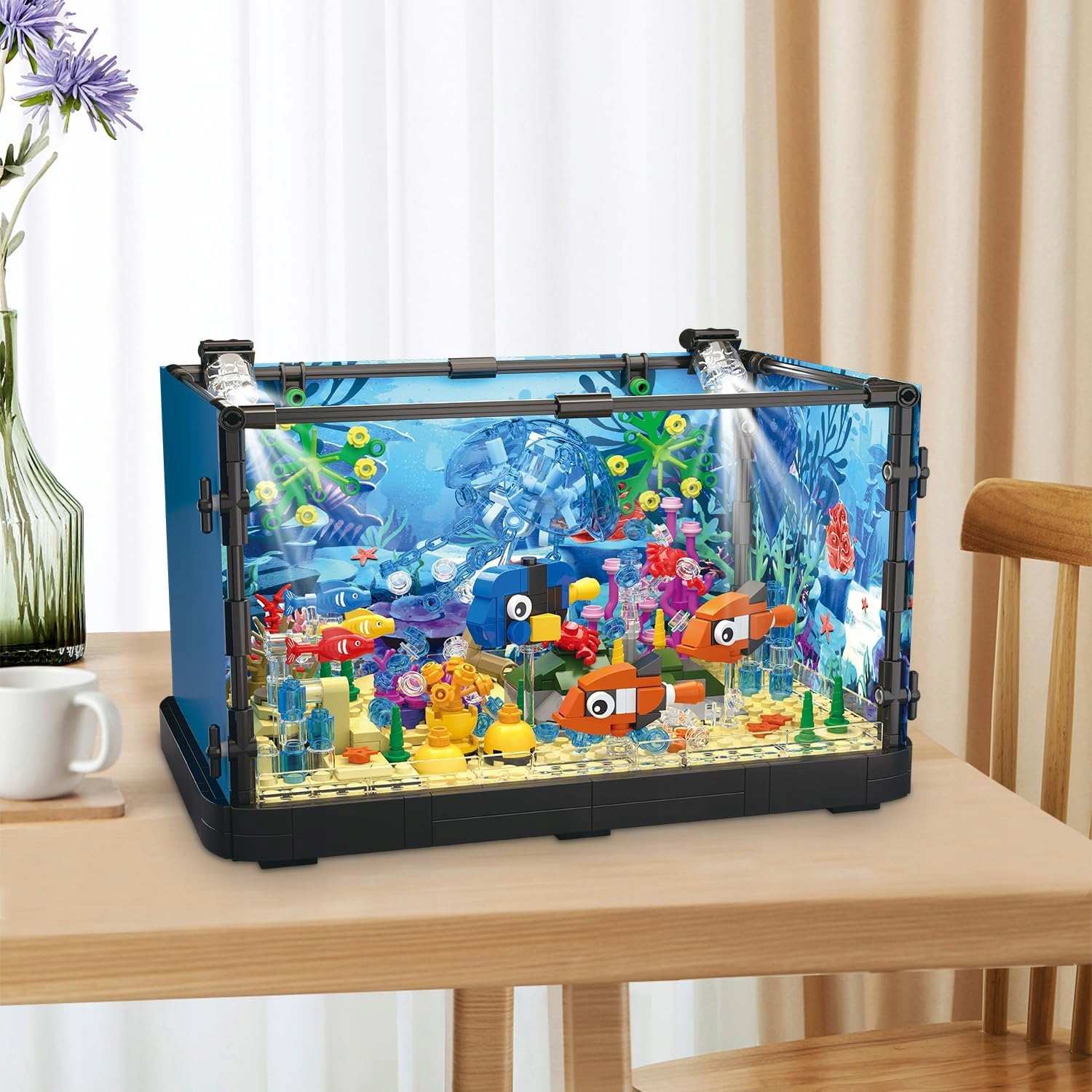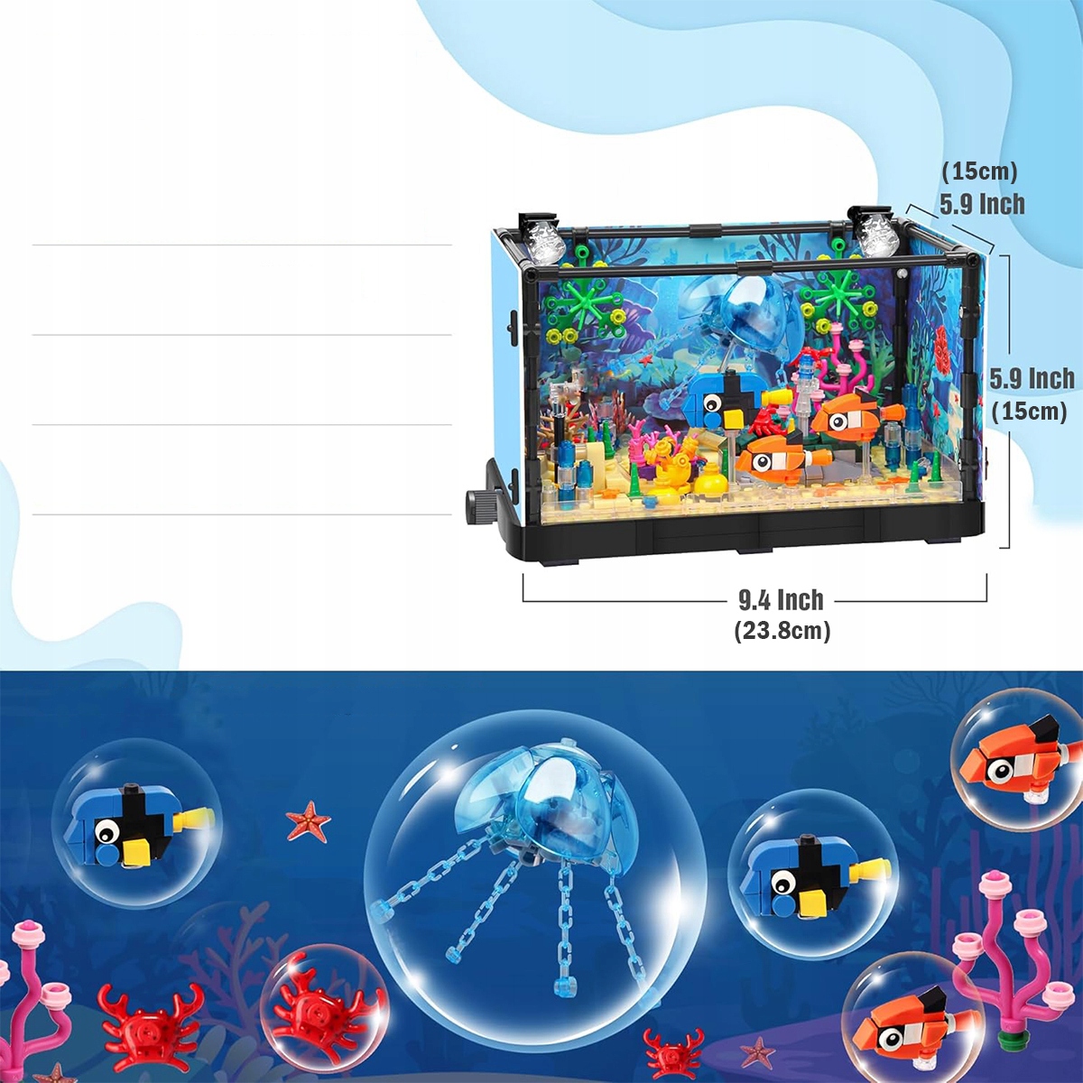 🐟🐟 Високоякісна ручна робота: наша конструкторська іграшка виготовлена з ABS-пластику, який гладкий на дотик і його нелегко зламати. Деталі не деформуються і не вицвітають, яскраво забарвлені та мають якісне покриття. Цей акваріум із кубиків можна розмістити де завгодно як ідеальний декоративний елемент.