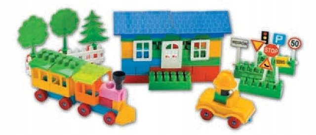 Крім блоків, набір також включає такі аксесуари, як: дорожні знаки, дерева, машини, навіси тощо. p>