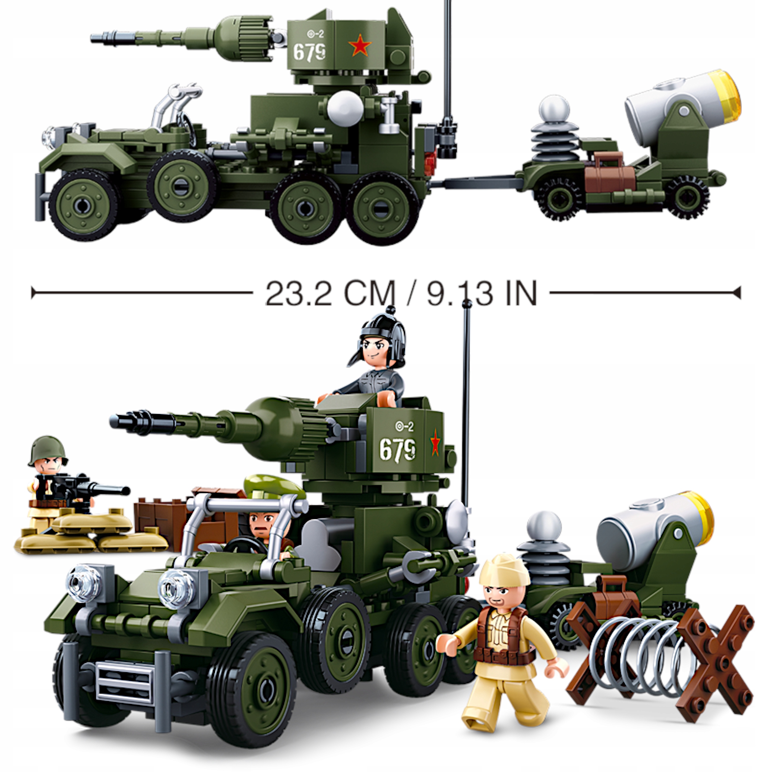 З цим військовим набором ви можете створіть взаємозамінні блоки 4 менших або об’єднайте їх у 1 велику військову машину танасолоджуйтеся годинами гри з блоками, впорядковуючи багато сценаріїв та поєднуючи їх з іншими блоками з відомих такі компанії, як LEGO, COBI тощо.