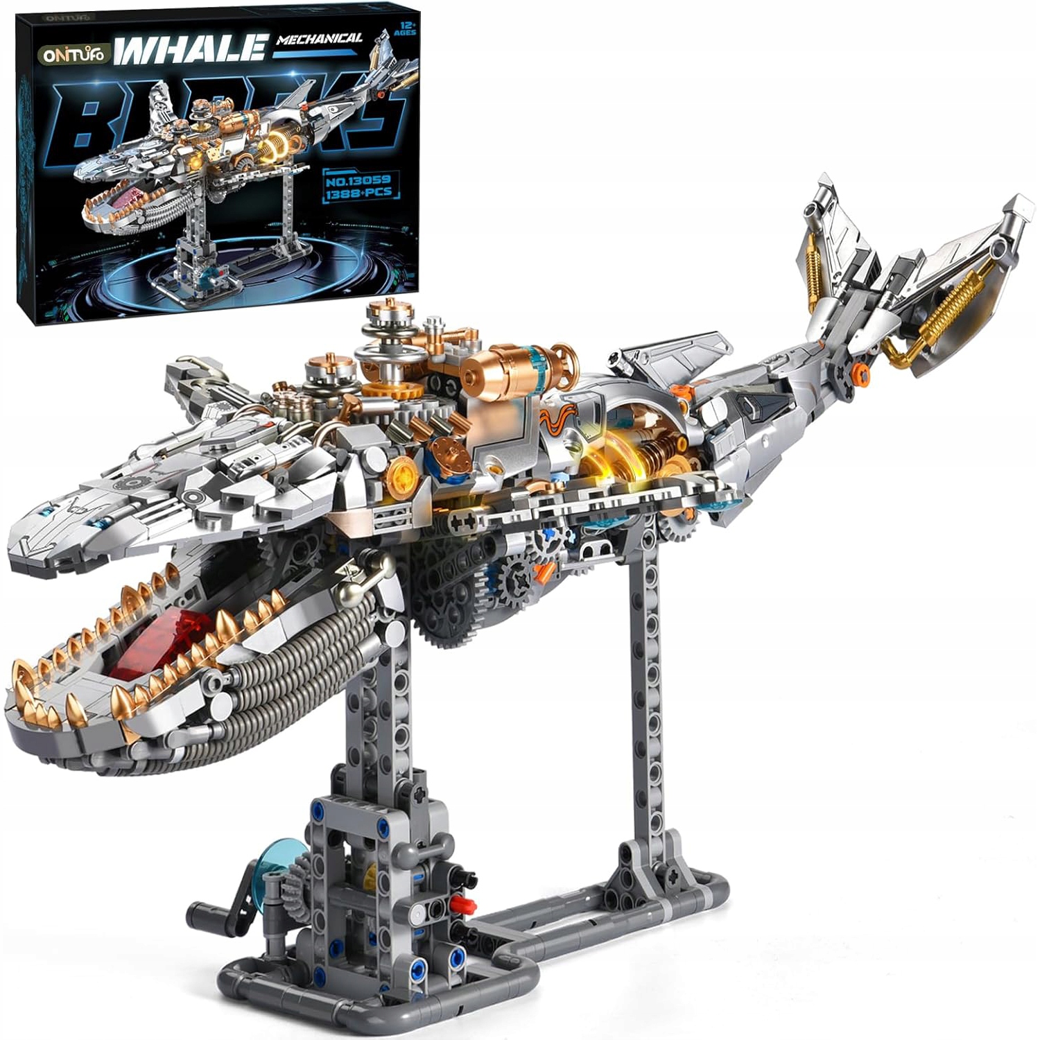 Механічний кит має дуже деталізований дизайн і включає численні рухомі частини, такі як гнучкі плавники, рухомий хвіст і реалістична морда. Ці рухомі частини не лише підкреслюють реалістичність кита, але й дозволяють гравцям різноманітно весело взаємодіяти після їх складання.