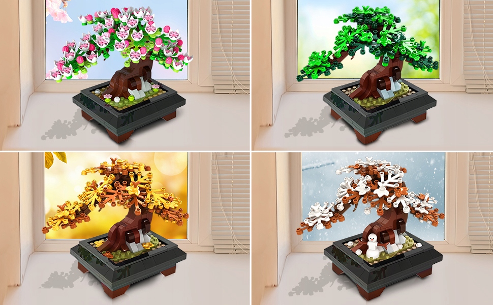 - Натхненний постійними змінами пір року, набір для будівництва бонсай INSOON пропонує захоплюючий візуальний досвід із взаємозамінними частинами, які зображують яскраві рожеві вишневі квіти, вічне зелене листя, чарівне жовте листя та засніжене листя. b>