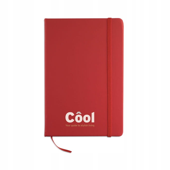 Записник формату А5 у твердій обкладинці ПУ. 192 розліновані сторінки (96 арк.). Відповідний еластичний ремінь для закриття та стрічка для маркування сторінок.