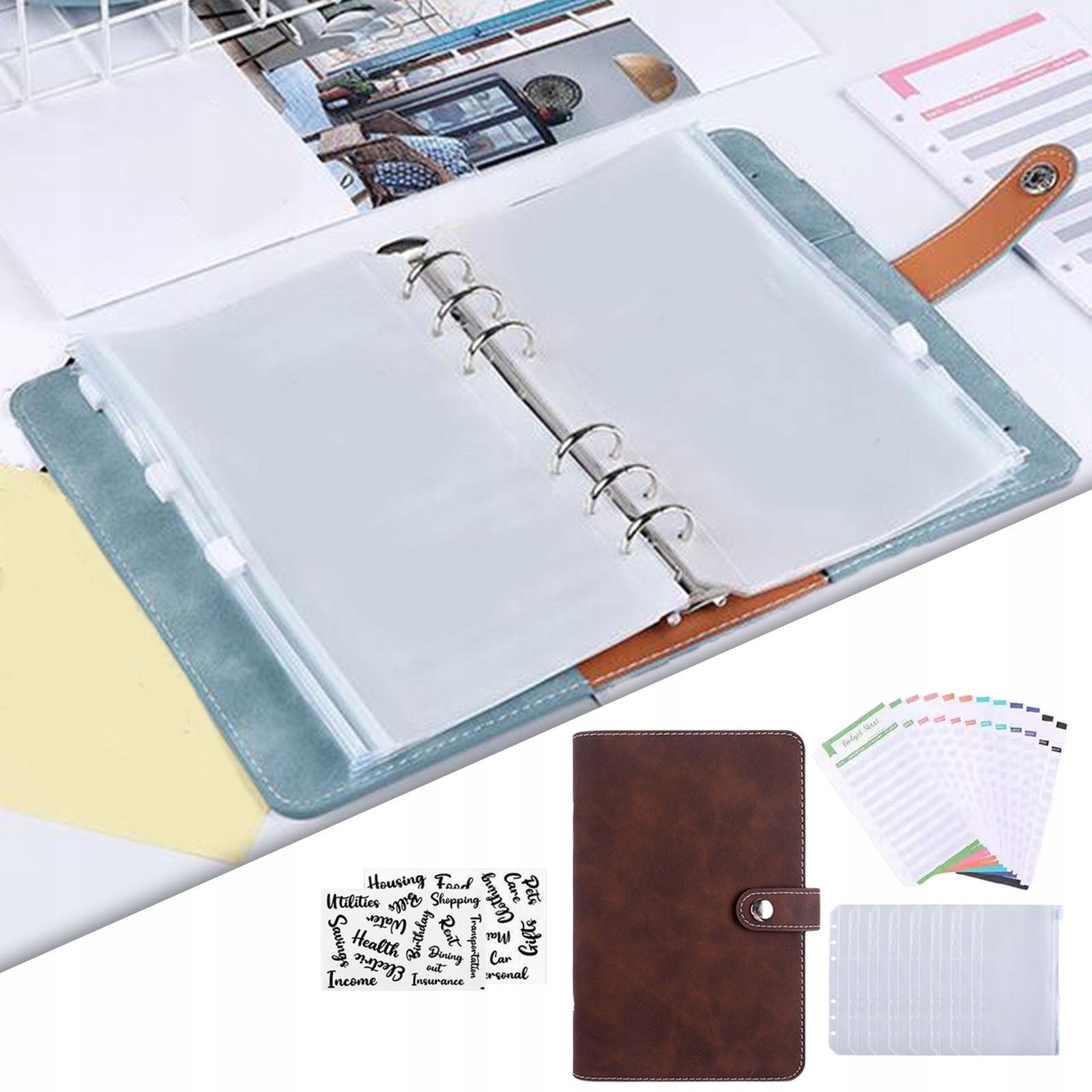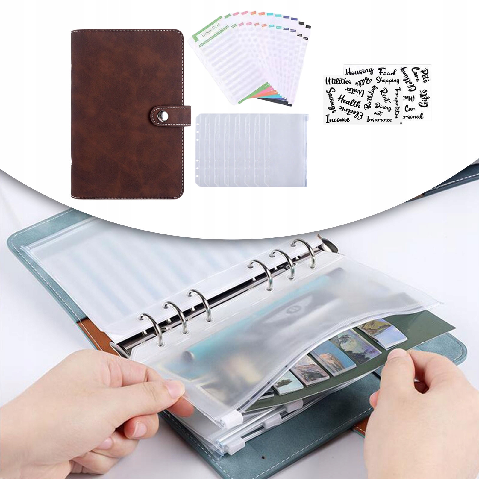 - У набір входить: 1 обкладинка з відривними сторінками, 12 кольорових бюджетних столиків, 8 прозорих пакетів на блискавці миттєвий, 2 наклейки англійською мовою.