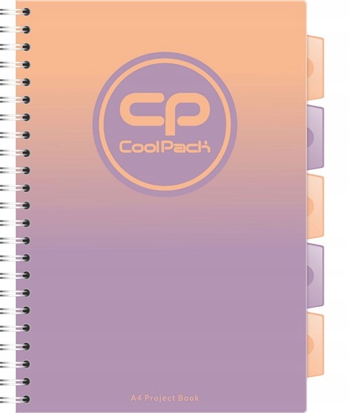 Високоякісний блокнот на 100 аркушів формату А4 від Coolpack із колекції Gradient. Блокнот має прозорий конверт, лінійку та п'ять розділювачів, завдяки яким ваші записи завжди будуть упорядкованими.