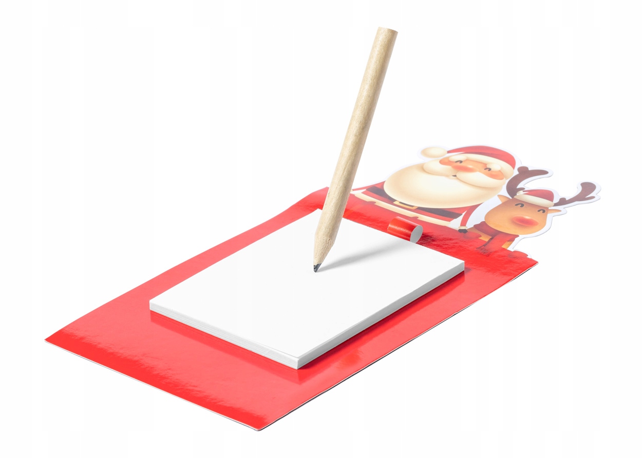 Магнітний блокнот із 40 порожніми картками та різдвяними фігурками вгорі. У набір входить міні-дерев'яний олівець.