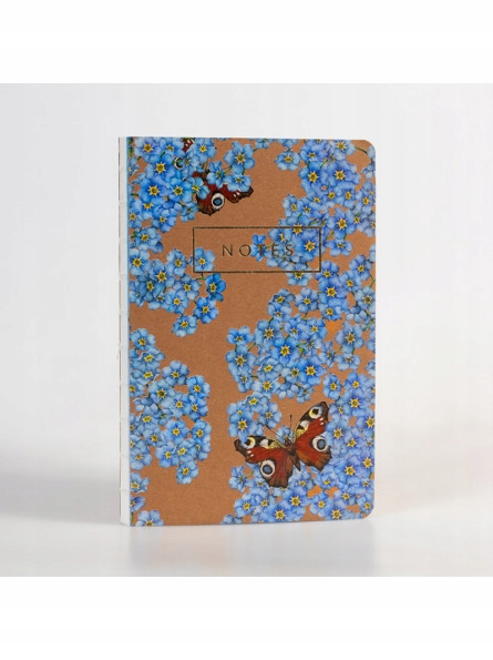 Обкладинка зошита з зображенням незабудок і написом золотим тисненням створюють гарне поєднання з натуральним картоном.