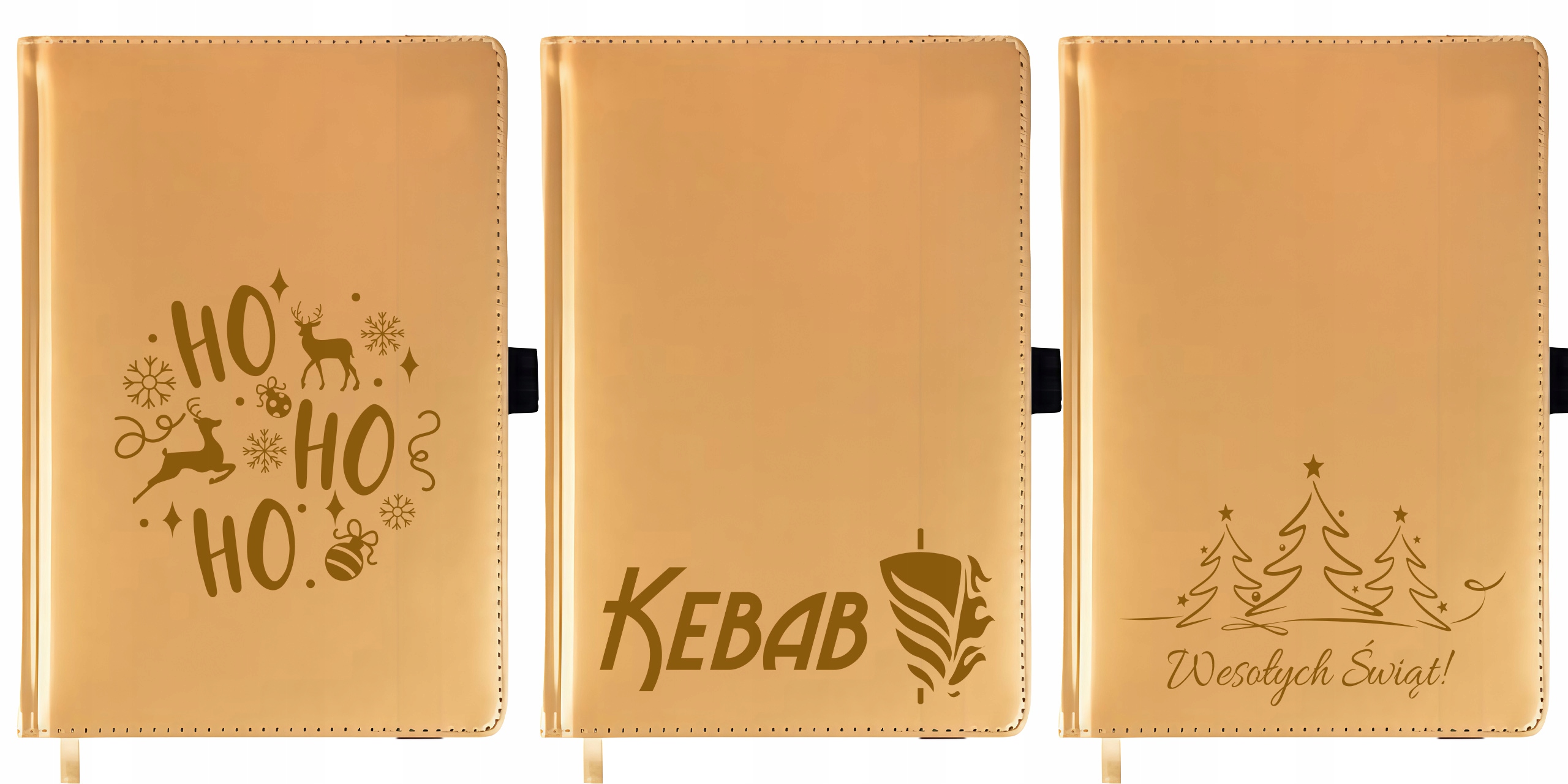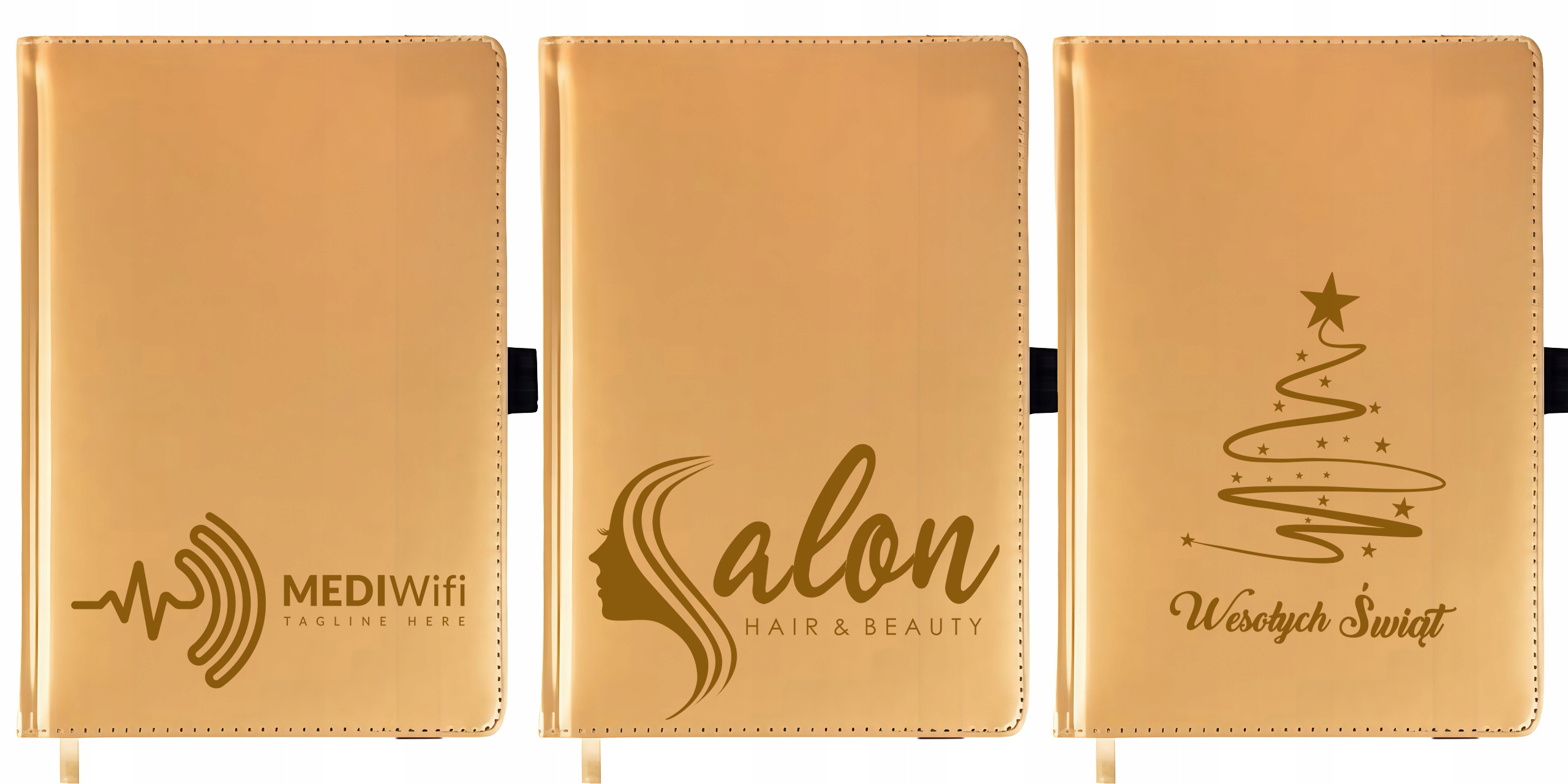 БЛОКНОТ РЕКЛАМНИЙ БЛОКНОТ З ГУМКОЮ, СІТОЧКА ДЛЯ ПИСУ, А5 ЗОЛОТО + ГРАВІЮВАННЯ