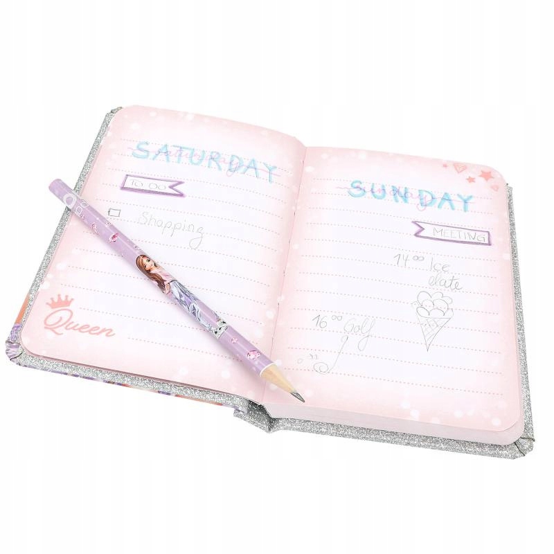 Цей красивий глянцевий блокнот із зображенням манекена на обкладинці постачається з відповідним олівцем.
