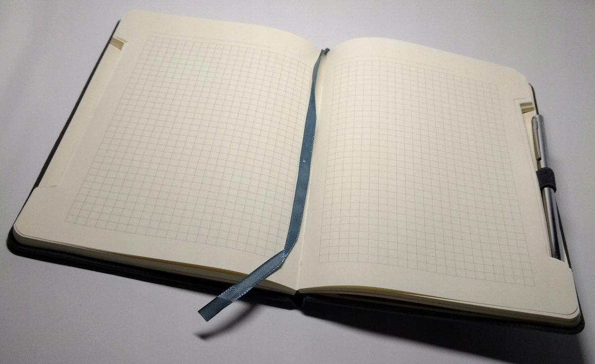 Зручний блокнот формату А5 в обкладинці з екошкіри LINEN, закривається на резинку і пластину, в комплекті ручка, з практичною кишенькою для додаткових документів і стрічкою для позначення вибрану сторінку. На кожній сторінці є місце для введення поточної дати. Замшевий папір кремового кольору підкреслює ексклюзивний вигляд зошита.