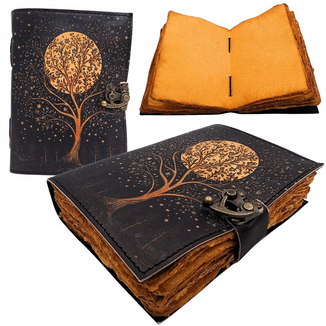 Вінтажний шкіряний блокнот - Дерево та місяць, 200 сторінок магії рукоділля