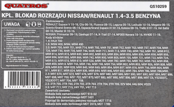 Блокування блокування Kpl Nissan/Renault 1.4-3.5 бензин Qatros QS10259