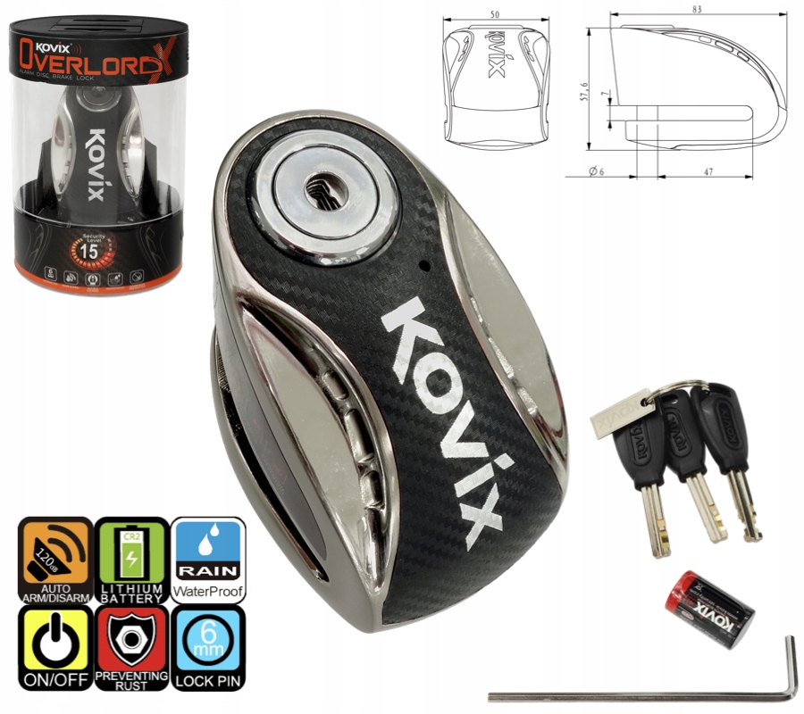 Замок гальмівного диска Kovix KNX6 із дуже гучним сигналом 120 дБ, один із найкращих замків на ринку.