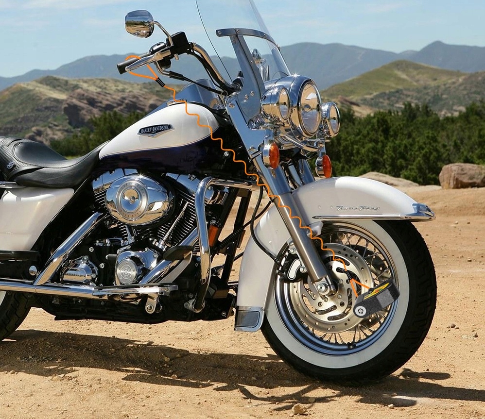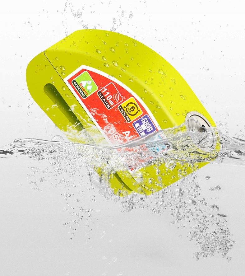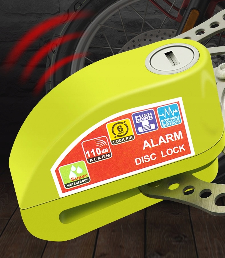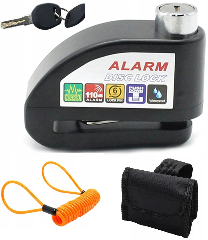 З чутливою вбудованою дуже гучною сигналізацією 120 дБ. При використанні замка можна вимкнути сигнальну сирену і використовувати захист як звичайний замок. Модуль сигналізації стійкий до погодних умов. У комплект входить літій-іонний акумулятор, що забезпечує тривалу роботу, і набір з 2 ключів. Фіксуючий штифт має діаметр 6 мм.