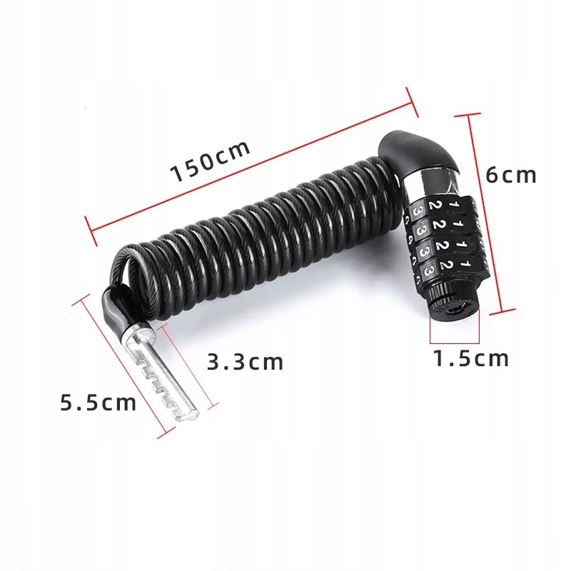 Відкрийте для себе свободу та безпеку кодового замка для велосипеда. Він висувається на 150 см, має 4-значний штифтовий замок і має компактні розміри - це ідеальний вибір для кожного любителя двох коліс. Він гарантує захист вашого велосипеда, скутера чи шолома за будь-яких умов.