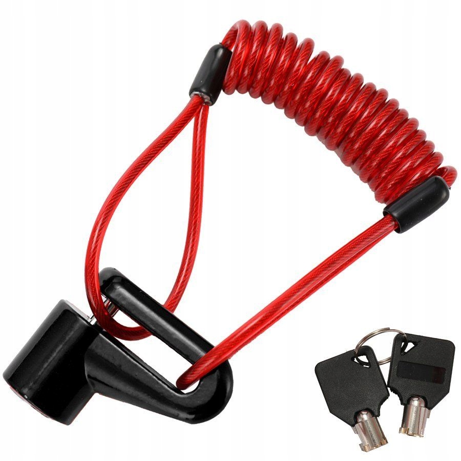 Сталевий трос довжиною 1,2 м дозволяє нам прикріпити наш автомобіль буквально до будь-якого стабільного та міцного місця. Просто прикріпіть трос до замка, розташованого на гальмівному диску, або пропустіть трос через колесо автомобіля, зачепіть його за тверде місце (наприклад, стовп, дерево) і закріпіть замком. Це рішення дозволить нам залишати наш автомобіль буквально будь-де.