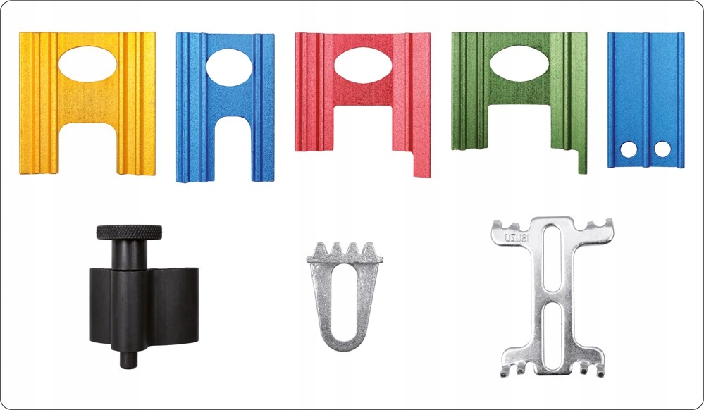 - Містить плитки для блокування розподільних валів, куб для блокування колінчастого вала та замикання маховика