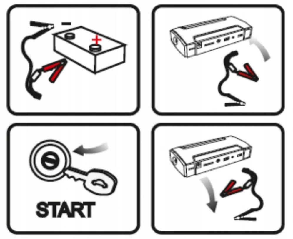 Маленький і дуже функціональний стартер автомобіля з акумулятора з функцією Power Bank. Це полегшить початок слабкого акумулятора у вашому автомобілі або дозволить вам запустити двигун, коли ваш акумулятор повністю випускається. Також корисно при запуску мотоциклів, скутерів, квадратів, човнів і навіть різних типів електричних іграшок. Stuck Starter також можна використовувати як банк живлення, завдяки якому ви можете заряджати акумулятори на своєму смартфоні, ноутбуці, камері, планшеті тощо
