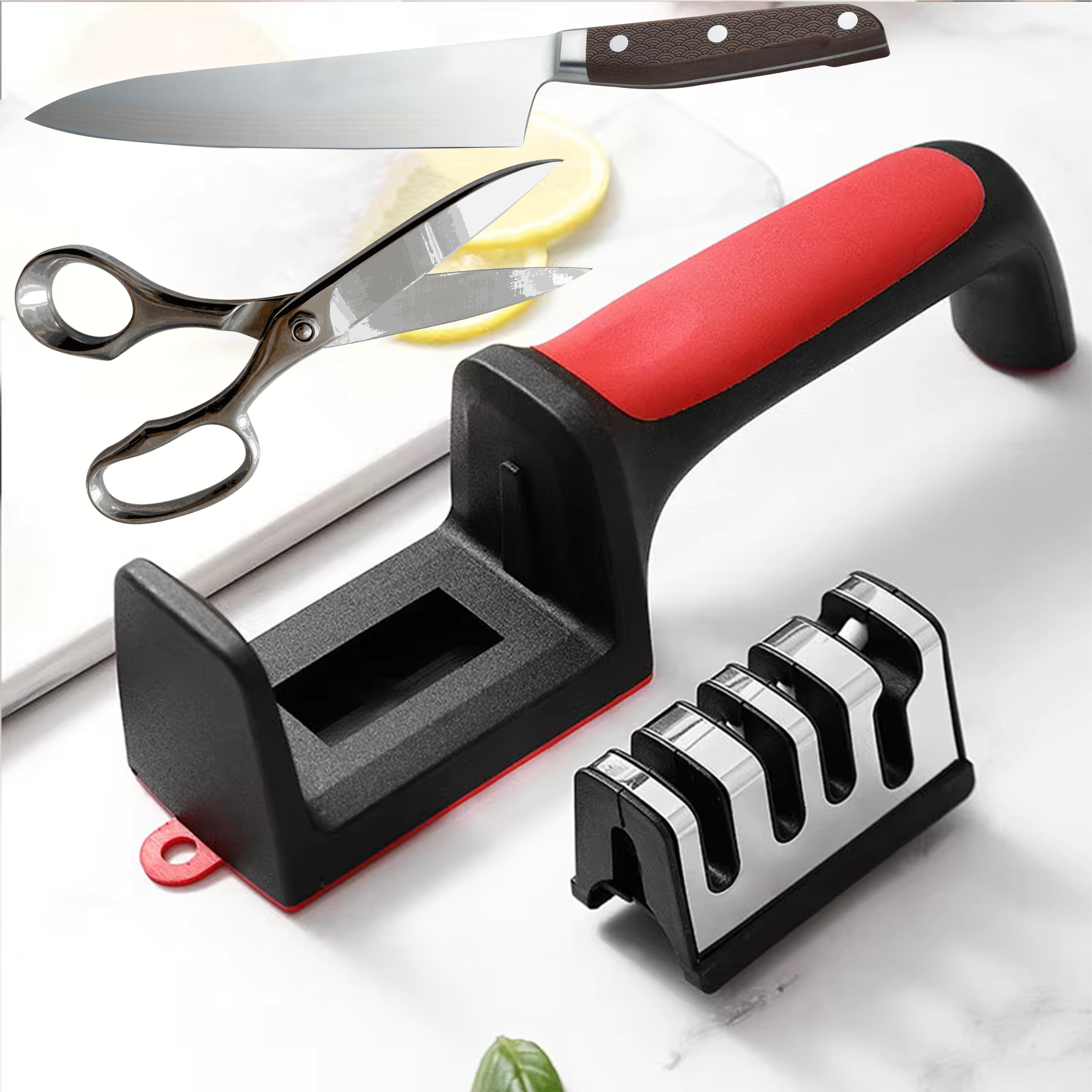 ТОЧИЛКА КУХОННИХ ДЛЯ НОЖИЦЬ, ТРИФАЗНЕ КОМПАКТНЕ КОЛЕСО 3-в-1